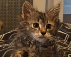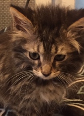 is an adorable 11 week old fluffy Tabby kitten. Playful, friendly and curious.