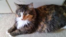 Layla is a female 3 year old maine coon mix with long hair, white belly/paws, and the rest is black/tan/orange calico/tabby. Healthy, vaccines are up to date, spayed in 2014. Once she gets comfortable in a new home she is very social and affectionate, and is playful. Loves a good brushing! She is curious and will follow you around all day. Gets along with children but not other cats other than Mickey, also featured on this website. To meet Layla please contact Kiyoko or Koiti at 914/413-6877 or 914/946-2907.