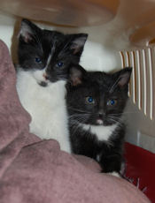 These two babies are about 7 weeks old and are very playful and happy. They are shy around new people and will need a little time to warm up.