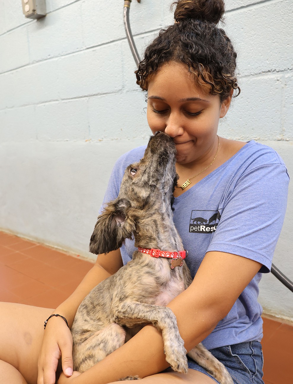 Lupita is a sweet, tail wagging girl! She is very playful, and friendly with people, including children, and all other dogs, but is not a fan of cats... no cats please for this lady. She loves to play and also loves to be held and gives tons of kisses. Lupita is close to being potty trained and is crate trained. If you are interested in this dog, please submit an application directly to our website at www.ny-petrescue.org. Only applications submitted directly to Petrescue will be considered.