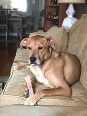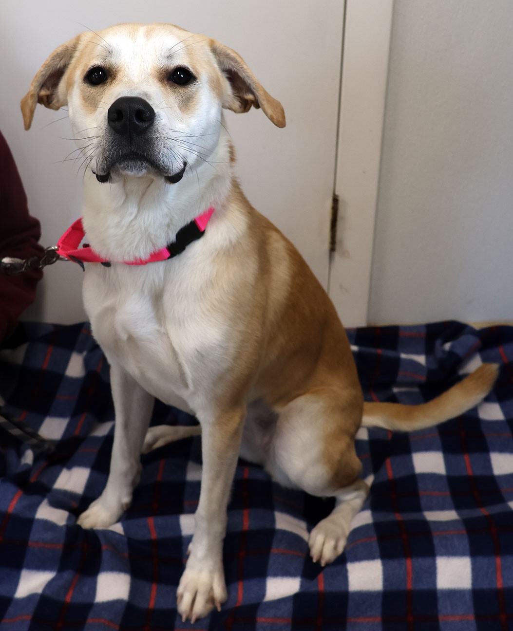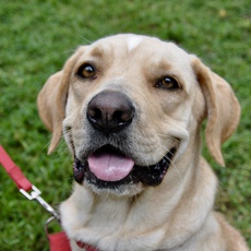 Lucy Lou! This lovely lab mix is as sweet as can be. She hasn't met a 2 or 4 legged creature she does not like. She enjoys people time, is always seemingly happy and just a really nice dog. Always up for a nice walk or a belly rub!