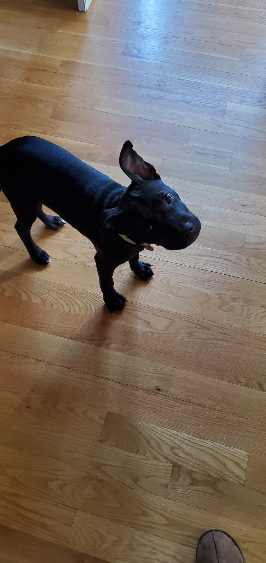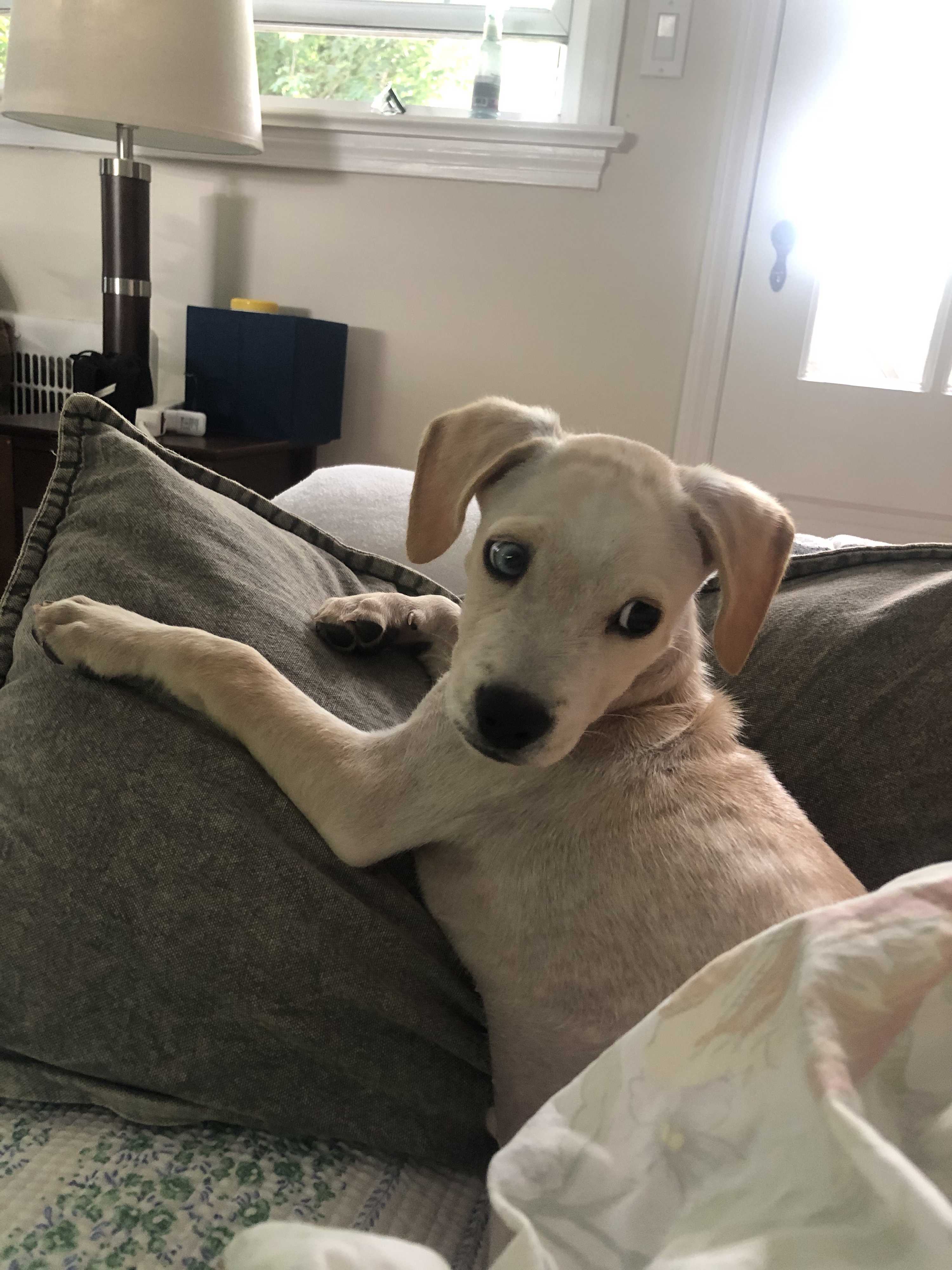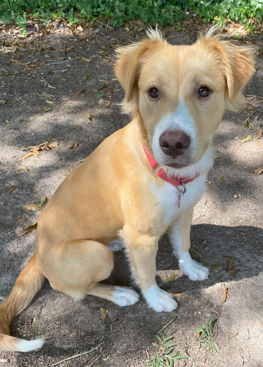 Lulu is an adorable lab mix around 35 lbs and 5 months old. She can be a little shy at first, but has bloomed in her foster home. She is getting very comfortable and happy now and enjoys her walks and cuddle sessions. Because of her shy nature we are recommending she go to a home with another dog and older children as well.