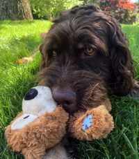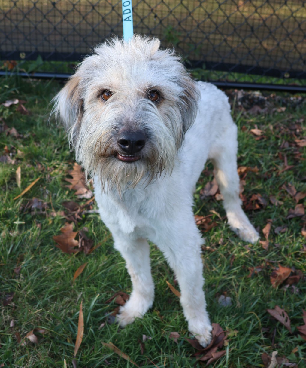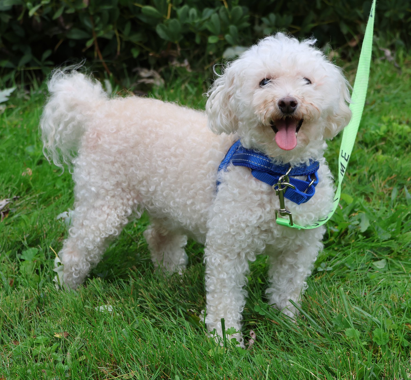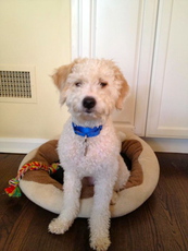 is an adorable boy, about 3 years old. He is happy and lively & would love to be part of an adult-only family. He enjoys: long walks, going for a ride in the car, chasing squirrels, and burying his bones for a rainy day. He is very loyal to "his people" and will bark at strangers. He is hypo-allergenic too!