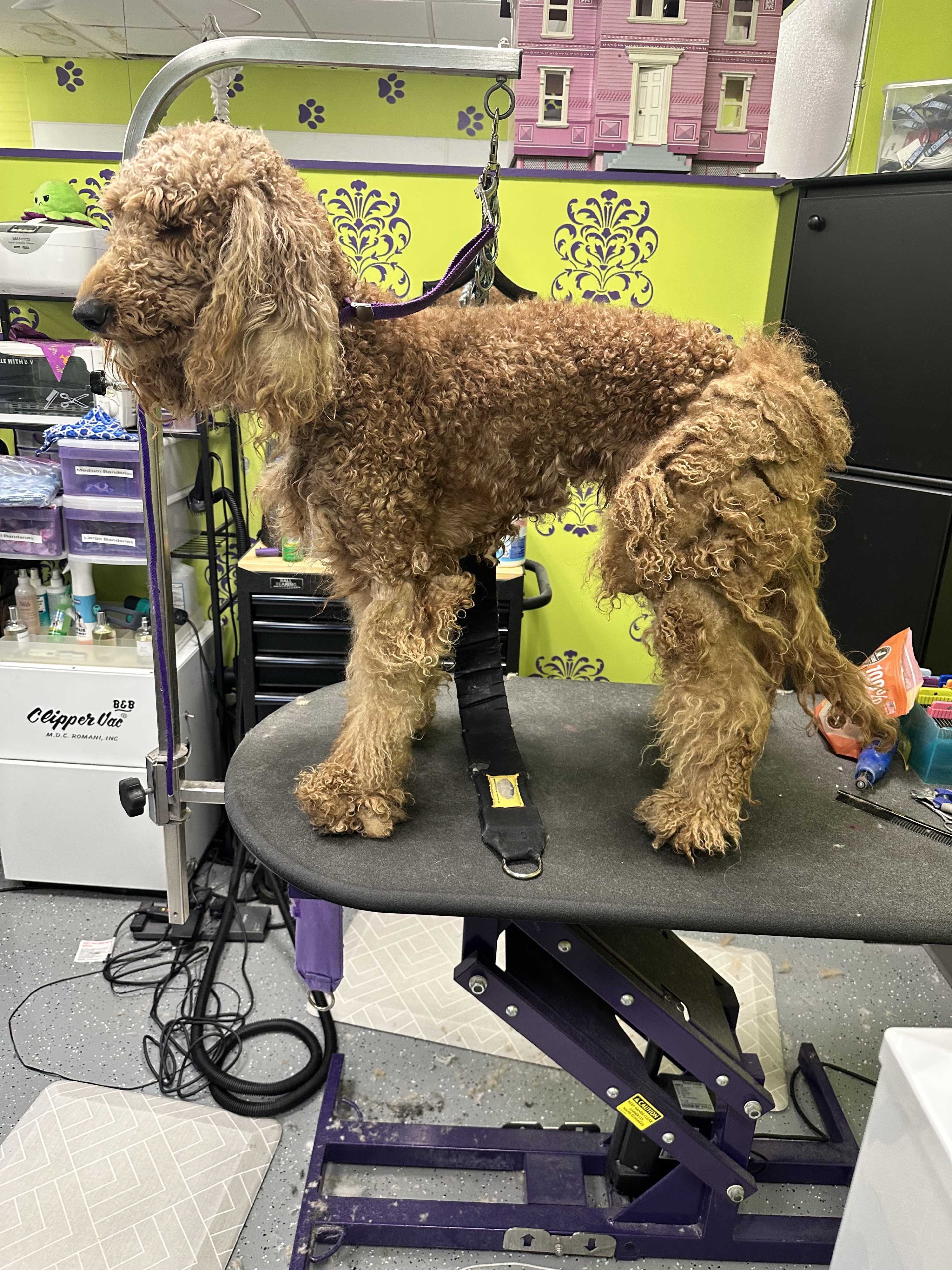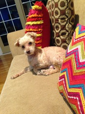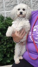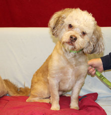 Lamb Chop is 7lb apricot mini poodle 12 years. more than anything loves to be held and feels most safe on your lap. He gets along with other dogs. Likes to go for walks. Good in the car. He is working on his house breaking. A true lap dog!