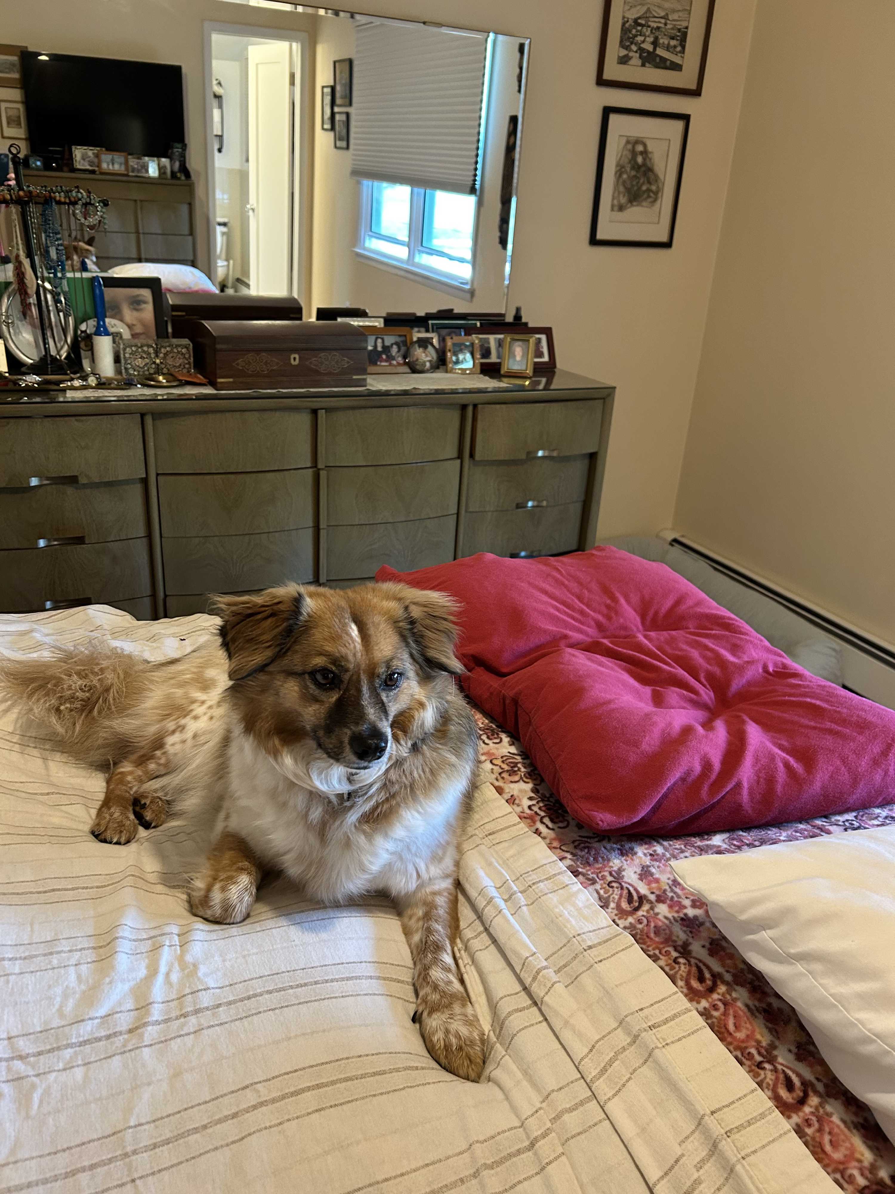 This is a Courtesy Listing and has no affiliation with Petrescue. Please contact the owner listed below directly. Luna is a 25 pound, 9 year old pup, up to date on all vaccines, who has lost her home through no fault of her own. She was happy and very loved by an elderly gentleman who unfortunately passed away. She is very sweet and loves to be spoiled with affection. Luna is used to spending lots of time at home, is very much a lap dog and will cuddle on the couch all day of allowed. Alternatively she loves her bed on the floor and will be very comfortable there. She walks nicely in her harness, does well on car drives, and obeys basic commands. She is not a barker and will only bark to alert you that someone is at the door. She seems to tolerate a cat, but wants to give you all her love and prefers to be your one and only canine family member. Luna has not had any experience with young children. Luna has always lived with one man, and as a result prefers the company of men…She will make a wonderful companion to an elderly gentleman. Luna will bring her bed, food, bowls, harness/leash, milk bones and all her gear with her to her new home. One of Luna’s eyes requires daily drops. If you are interested in this dog, please contact joanne.lynch06@gmail.com