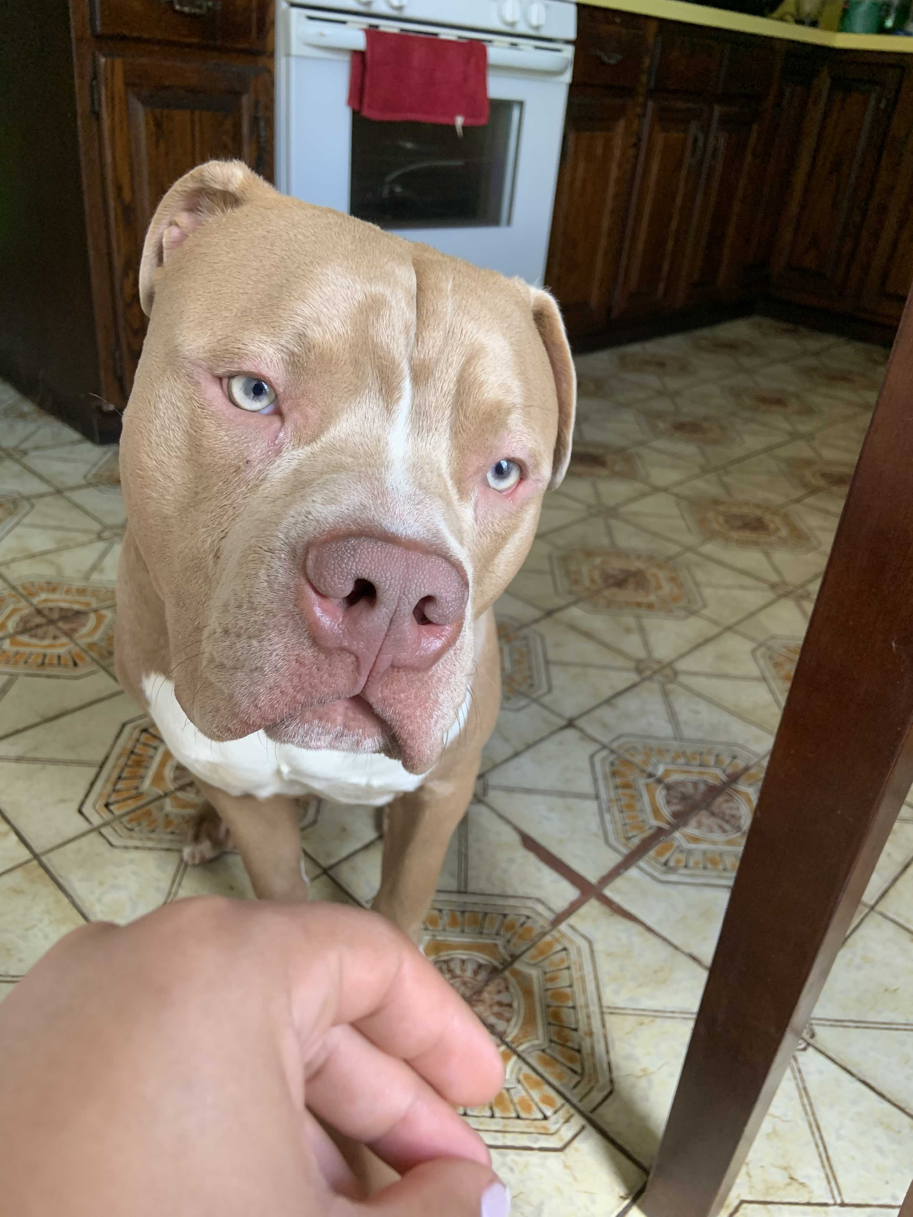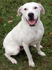 is a beautiful girl, about 8-10 months old and 34 lbs. She is happy, outgoing and ready to have some fun!