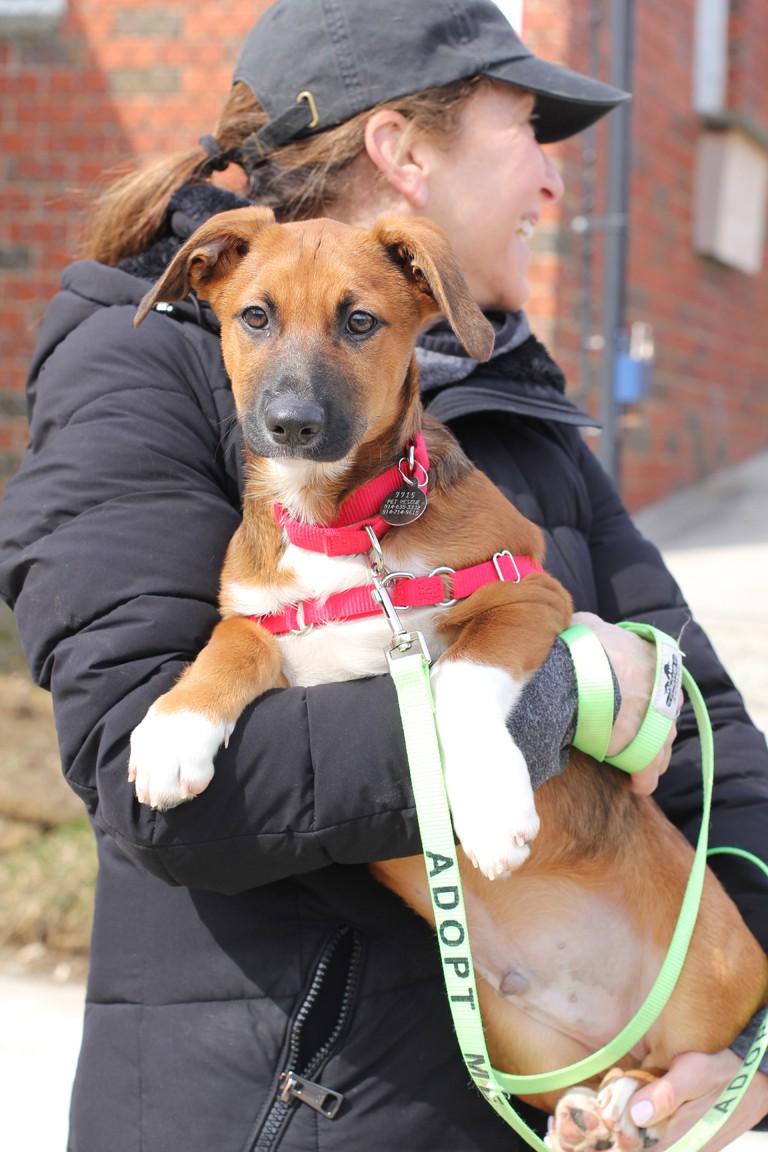 Lady is such a sweet dog. She is getting along great with her foster siblings and is learning from them how to set and respect boundaries. She is playful, curious, and confident. Lady loves to snuggle and is such a heavy sleeper. She is medium to high energy. loves to rough house with her siblings and would likely enjoy being in a house with a canine sibling. She is highly food motivated and is a quick learner, although she is definitely still in her puppy phase. Lady is working on potty training, leash walking, basic commands and crate training. Don’t miss an opportunity to bring this adorable bundle of joy into your life. Be sure to complete an application on line, continue to monitor our website for updates and come to our Meet & Greet Saturday 11:30-1:30. If you are interested in this dog, please submit an application directly to our website at www.ny-petrescue.org. Only applications submitted directly to Petrescue will be considered.