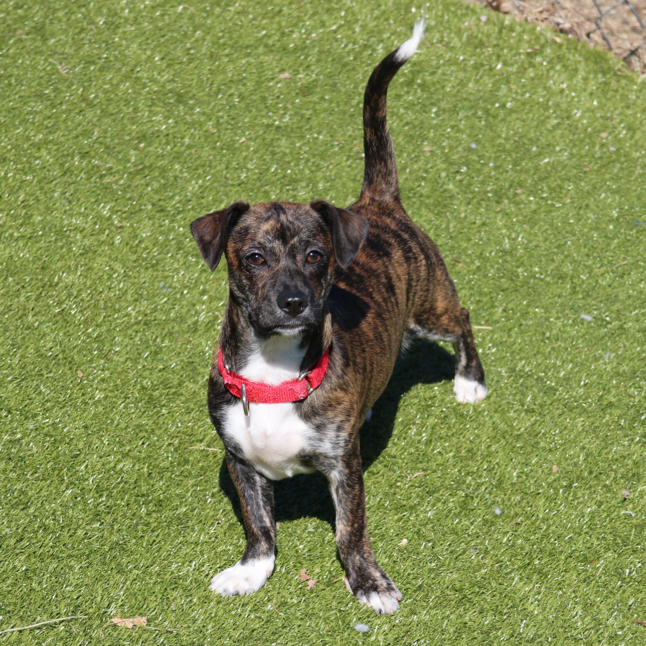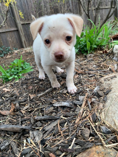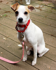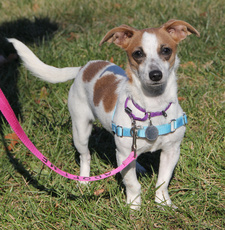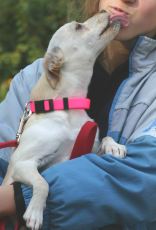 Lacy is a sweet petite girl with at least a little Jack Russell Terrier and Chihuahua in her. She is about a year old, 17lbs and has the sweetest face. She is a shy when first meeting new people but warms up quickly. Once she gets comfortable she is all about the cuddles. She loves playing with the other dogs in her foster home and she would do best in a home that has another dog. She seems housebroken, shares her toys and treats and is enjoying leisurely walks with her four legged friends. She also loves exploring the fenced in backyard as well as playing tag with her buddies.Lacy is gentle soul waiting for her forever family (without cats as she likes to chase them!)