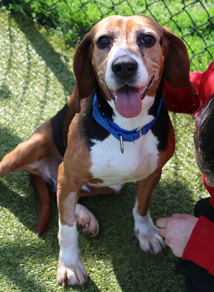 is a pure breed beagle who will be one year old in January. Like any good beagle, she loves to follow her nose. She is a very playful girl, loves other dogs and is very well behaved. Her markings are just beautiful! Thank you Colin Lavan for sponsoring my ticket to freedom!