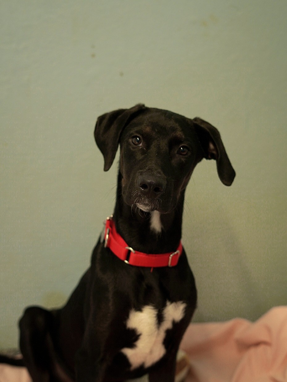 is an adorable pup, about 7-8 months old and around 34 lbs. He is very sweet and gentle. Friendly with people and other dogs. The worried look on his face makes you just want to hold him and let him know everything will be ok. He would love to find a gentle loving family to call his own. He will be neutered shortly. Thank you Olivia Rodriguez & Nicholas Brown for sponsoring my ticket to freedom!