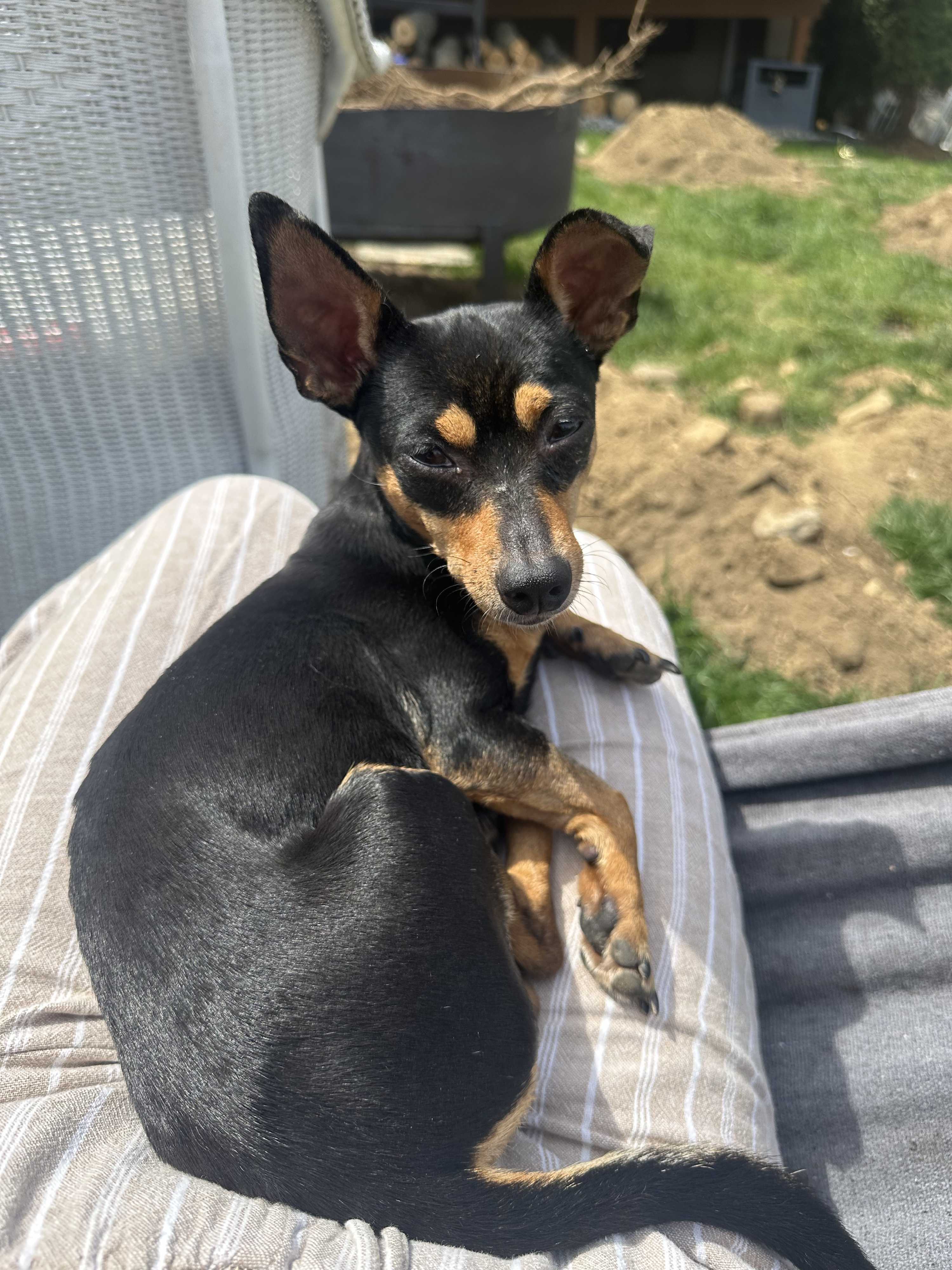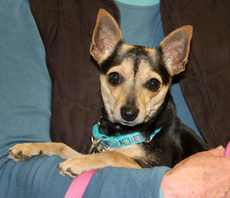 Lupe was found as a stray on Isla Mujeres, Mexico. She is 2 years old. We believe she is a Dachshund Mix who lived in a home and was abandoned. She loves people and some dogs and cats, but will growl, but not bite some other dogs. She loves Mac, the dog she is living with, plays with him, licks his face. She is housebroken and LOVES to snuggle with her humans. She is a total lap dog.