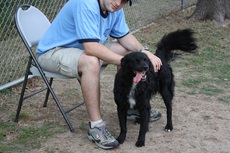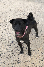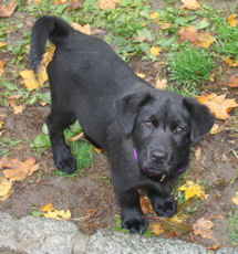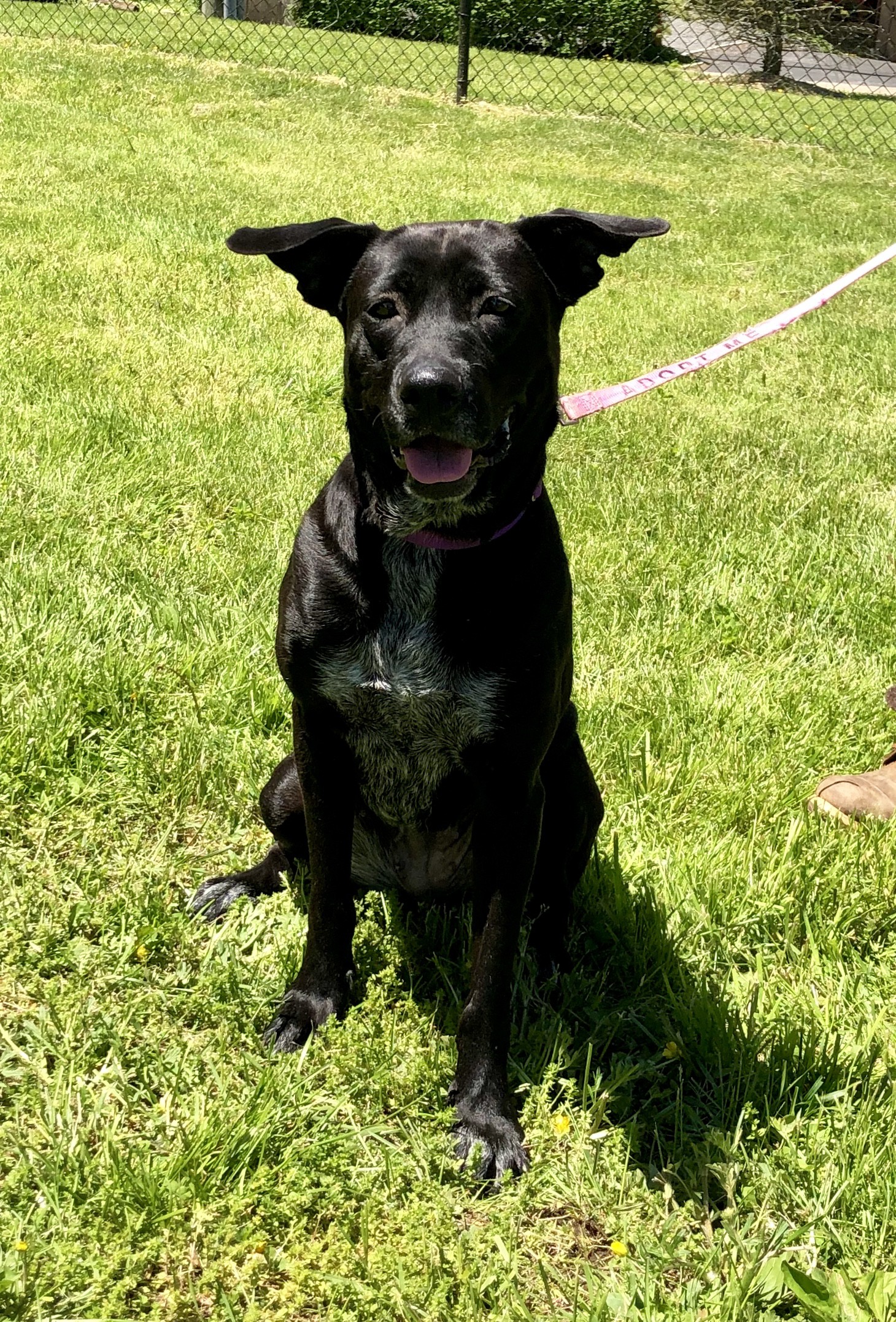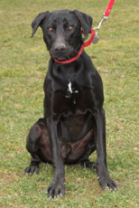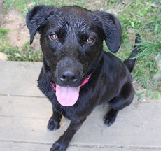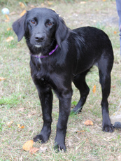 Lady's name fits her well! She is a black retriever mix, about 1 year old and 42 lbs. She is a quiet, loving, friendly dog who would thrive in a gentle family. Lady loves people (including children over 7), other dogs and is good with cats. She just wants to be close to you and loves praise. Loud noises scare her and she greets everyone as a good friend. There is absolutely no aggression in her and she would be a wonderful family dog who would shower everyone with kisses and sweetness. Lady rides beautifully in a car, is working on her housebreaking and is spayed. She's a big hit at the dog park! Please fill out an application.