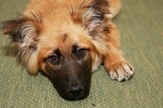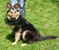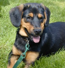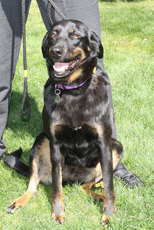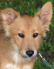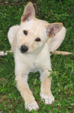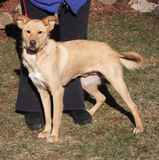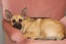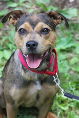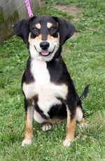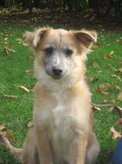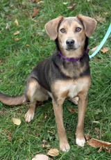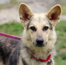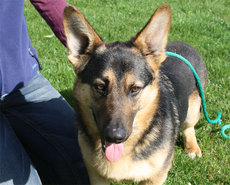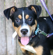 Lady is a 8-9 month old mini German Shepherd mix, weighing about 30 lbs. She is very outgoing, friendly and loves to play... she is always smiling. She is in a foster home with 2 other dogs and enjoys their company. This spunky girl would love a family that is fun and active - another playful dog in the house would be ideal. Lady is mostly house broken. She sleeps through the night in her crate and in the morning she greets you with lots of kisses and wants her belly rubbed. She knows basic commands such as sit and down - but does need some more training as she still jumps up. She is very eager to learn and is a very smart little girl. Click here to watch a video of Lady