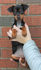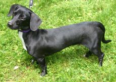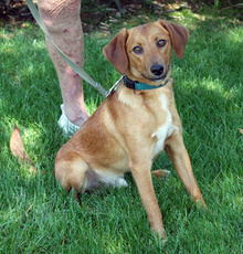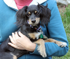 is an adorable little Doxie mix, about 15 lbs and around a year old. She is a happy, sweet and lovable girl. A gentle little lady who enjoys the company of her family. She is patient and playful (likes to fetch) and who really enjoys going for walks and having her ears scratched and belly rubbed and if you ask her politely she will get up and dance with you. She is a beautiful companion and will reward with sweet little kisses. She is paper trained and "goes" outside as well. Please fill out an adoption application.