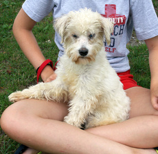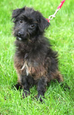 Lacy is an adorable 6 month old Scottish Terrier mix, weighs 17 lbs. (cuter than her pictures show her) and low shedding. She loves everyone, adults, dogs of all sizes, and is great with kids. She is an outgoing, high-energy puppy that loves to play. She's a thinker, would like lots of exercise, and probably would be great at Agility. Lacy is easy going, smart and loves curling up in your lap and giving kisses. She sleeps thru the night in her crate and appears to be housebroken if kept on a schedule. Lacy likes to bark at cats so a home without cats is suggested. Her brother Cagney is listed as well.