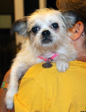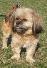 Lana is a sweet, playful Peke-Poo about 2 yrs old. She is a bit shy at first, but warms up after a few minutes. She wags her entire body when she sees you come in the door. She is learning to walk on a leash and on her housebreaking. She sleeps through the night without a peep on her foster mom's bed and enjoys the company of the other dogs in her foster home.