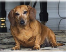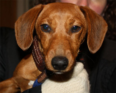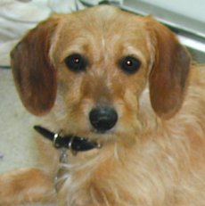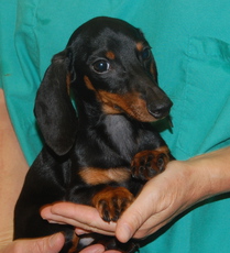 is an adorable little Dachshund, about 1-2 years old and 13 lbs. Thank you Barbara Leon & Dana Mumme for contributing to my vet care!