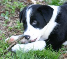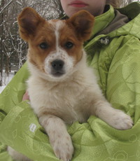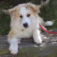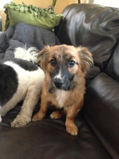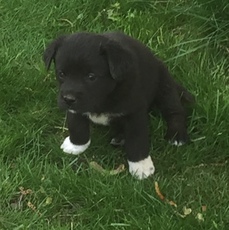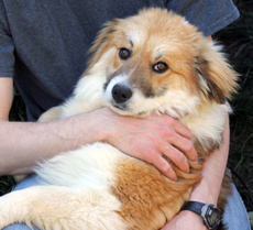 Laddy is an adorable Collie / Aussie Mix, about 4 months old and around 26 lbs. He is a total cutie and very friendly - he loves people and other dogs. He is already housebroken and sleeps through the night. He loves to take long walks, enjoys playing around outside. Although Laddy is already good on the leash, he sometimes still gets a little nervous around traffic. Dog training or a person (and maybe another dog) who leads him a little will certainly help. He is a very quick learner and is learning to climb stairs, which scared him a little in the beginning. He loves to cuddle up to people and enjoys getting his belly rubbed! Being still a puppy, he will need a home where he gets the love, care and patience that he deserves and the time to explore the world. Laddy already prepared himself for St. Patrick's Day wearing his green bandanna. Who wants to celebrate St. Patrick's Day with him???