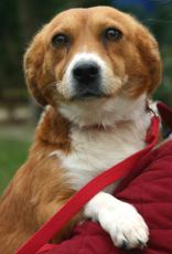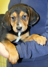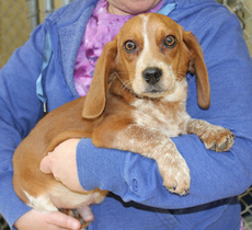 Luke is an adorable Beagle/Basset mix, about 6 months old and 10lbs. Very sweet, friendly and adorable. He plays well with other dogs, but is a little intimidated by the 'big' dogs. He loves to be held and snuggle up to your neck, but also enjoys running around with other four legged creatures.