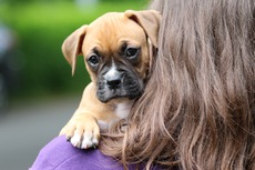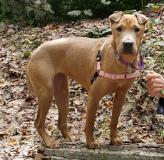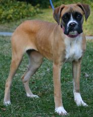 is a purebreed Boxer weighing 34 lbs. She is still a puppy and is only about 8-10 months old. She came to us from a high-kill shelter and something in her past has traumatized her, which breaks our hearts since she is so young. She loves people and is very sweet, gentle and affectionate, but is very fearful of loud noises (traffic) and other dogs. She is tentative and unsure in new situations. She would not walk more than a few steps when she first came to us and now walks nicely on quiet streets. She has come a long way since being with Pet Rescue, but she has a long way to go. She now wags her little tail and is happy to see the volunteers that walk her and spend time cuddling her. She needs a special home with lots of TLC and patience to help her come out of her shell and reassure her that everything will be ok. She needs to be an only dog. If you are that special person, Lyla will reward you back many times with her love and will create a lifelong bond. Please fill out an adoption application.