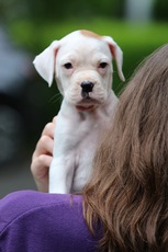 Boxer mix pup litter, 8 weeks old. This little runt is the sweetest, most quiet female of the bunch. She prefers humans to her crazy siblings, and will sleep in your arms to her hearts content. Now accepting warm arm application for this beautiful little girl! Her mom is also posted.