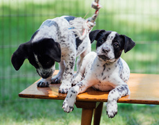 Lady's pups are just adorable! They are about 10 weeks old and weigh around 12 lbs. There is 1 female and 1 males. If they grow up to be like their mom, they will be the sweetest and friendliest dogs (see Lady, also posted in past adoptions). These pups are happy, playful and outgoing.