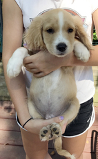 Lacy is an adorable Spaniel mix, about 15 pounds and 3-4 months. She is a fun little girl who loves to play with her toys, her brother, Farnsworth, and snuggle up next to her foster family. She is doing very well with her housetraining and is great with the older children in her foster home. She is a bit shy and will do best in a home with another dog to show her the ropes.