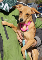Laika is a lovely 1-2 year old Mix (in the South, they would call her a Feist) and around 16 lbs. She is much smaller than she looks in the photos. She is very calm in the house and loves to sit on your lap, but is not demanding about it. She will hang out near you and sleep at your feet just as happily. She sleeps through the night in her crate without making a peep. She seems to be house broken too. While she is great with other dogs and cats, she does not like to share her attention with them. As a result, she probably would do best as an only pet or another quiet pet like her. She is great on walks and goes to the dog park regularly, which she enjoys very much. She is one of the most lovable dogs the foster mom has fostered in a long time and just so even tempered. She is a real joy and very smart too.