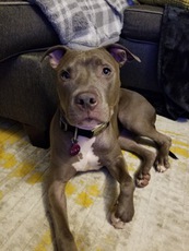 Luna is only 8 months and as affectionate and sweet as can be. She loves everybody, including cats and other dogs, and doesn't realize she's too big to climb in your lap. She took a trip to the dog park and loved being able to run like the wind with other dogs. Because she has a lot of energy and loves to play, she would really like to have a yard or regular visits to a dog park. She loves other dogs and plays very nicely with them, but she is a jealous lover and does not want to share her parents with another dog in the home.