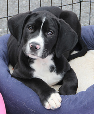 If you are interested in this dog, please submit an application directly to our website at www.ny-petrescue.org Only applications submitted directly to Pet Rescue will be considered. This is sweet LuLu who, despite all the changes in her young life, is as sweet, loving and trusting as they come! She is a about 8 months old and is a lab mix. She's mostly black with white but has gorgeous reddish brown highlights. Her pictures don't do her beauty justice. She probably won't get much bigger than she is now (approx. 30 pounds). LuLu loves everyone she meets. She would love another dog in the family to play with or the opportunity to regularly visit a dog park to play with doggie friends. She plays well with dogs of all sizes. Her foster brothers and sisters range in size between 20 pounds to 100 pounds. She may be alittle timid at first but warms up quickly (a couple of minutes). She's a little spitfire who has a lot of energy and would love an active family. She loves to cuddle and give her people kisses. LuLu loves to crawl up into her foster mother's lap for loving. LuLu is crate trained, sleeps through the night, and is housebroken (accidents can be expected in a new house until she learns her new routine). She will bring you laughs and love and make a fantastic addition to any family!