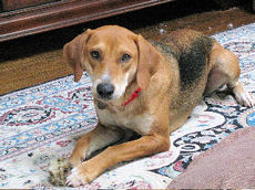 Lady is too sweet for words. She's a wonderful hound dog mix that loves being with her people. She's 47 lbs. and could use a few extra pounds. She is approx. 1 to 2 years young. Lady is very gentle when playing with the 7 other dogs in the house and likes cats. She's very calm submissive and a dream to be around. Lady appears to be house trained and a very quick learner. Rides well in the car. She would be a great companion. Lady is a recent mom and her pups will be posted soon. Thank you Mary Carpenter for sponsoring my ticket to freedom!