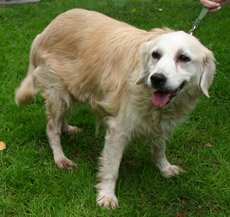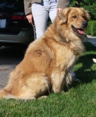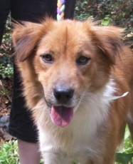 Lyle has a very lush and long coat. He looks a lot like a Golden and has the calm and gentle personality of a mature Golden. He is about 3 years old and around 60 lbs. He is good with other dogs except large male dogs. He is gentle on the leash and already knows some basic commands. He was given up by his owner because he was heartworm positive. We have had him treated and he is ready to go to his forever home now. He is in a foster home and they report that Lyle is a very nice boy. He is calm, great with kids and other dogs (except large males), seems to be fully housebroken, walks well on leash and obeys commands. He seems to be afraid of men and would prefer an all-female household. Thank you Erin Whelan for sponsoring my ticket to freedom!
