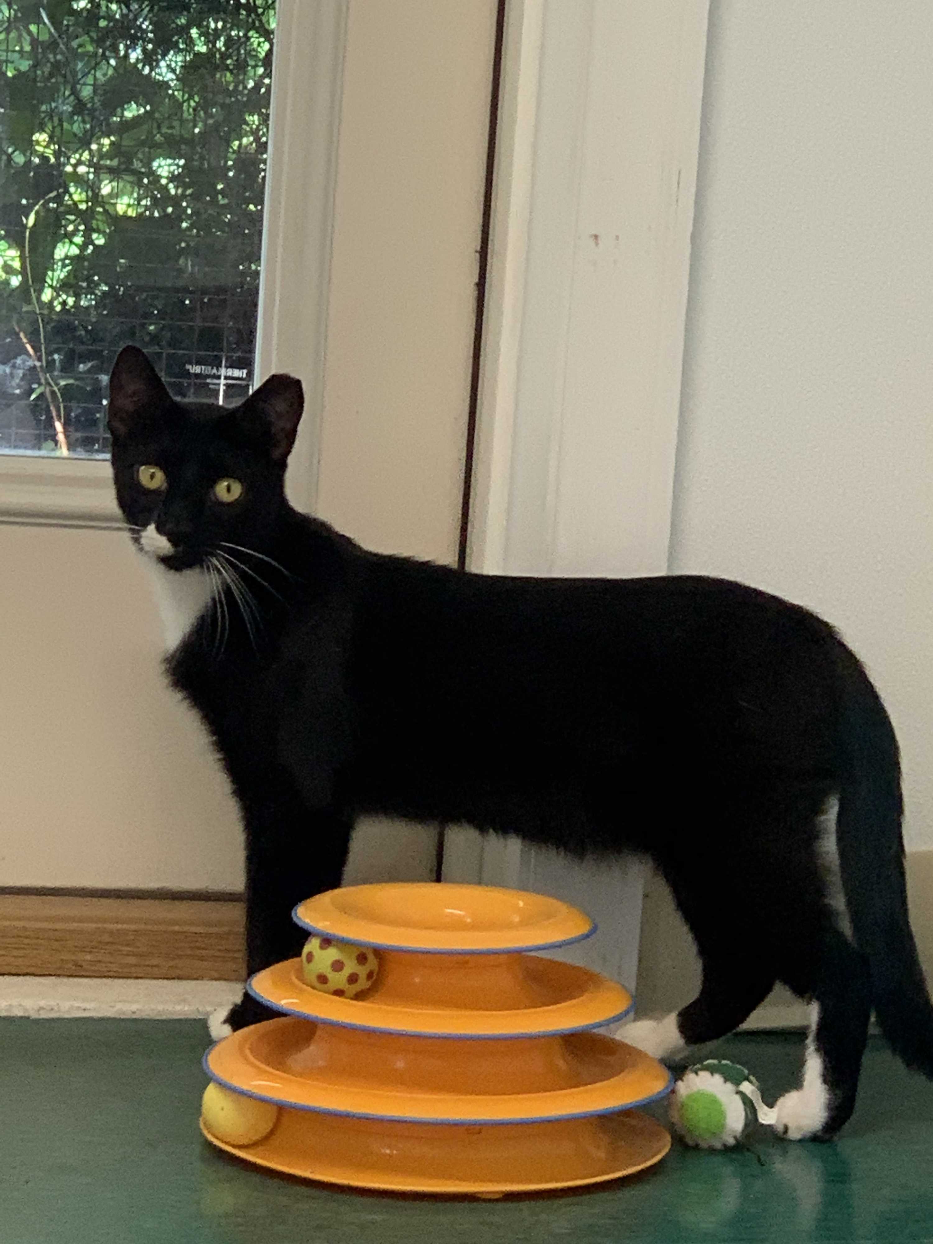 Magic is a super friendly, black male cat with the most gorgeous green eyes. He attached himself to his foster family but because of their dog, they cannot keep this handsome cat. He is affectionate, very lively, and a great mouse catcher! To meet this special feline, please contact Tina at tinasachs@verizon.net.