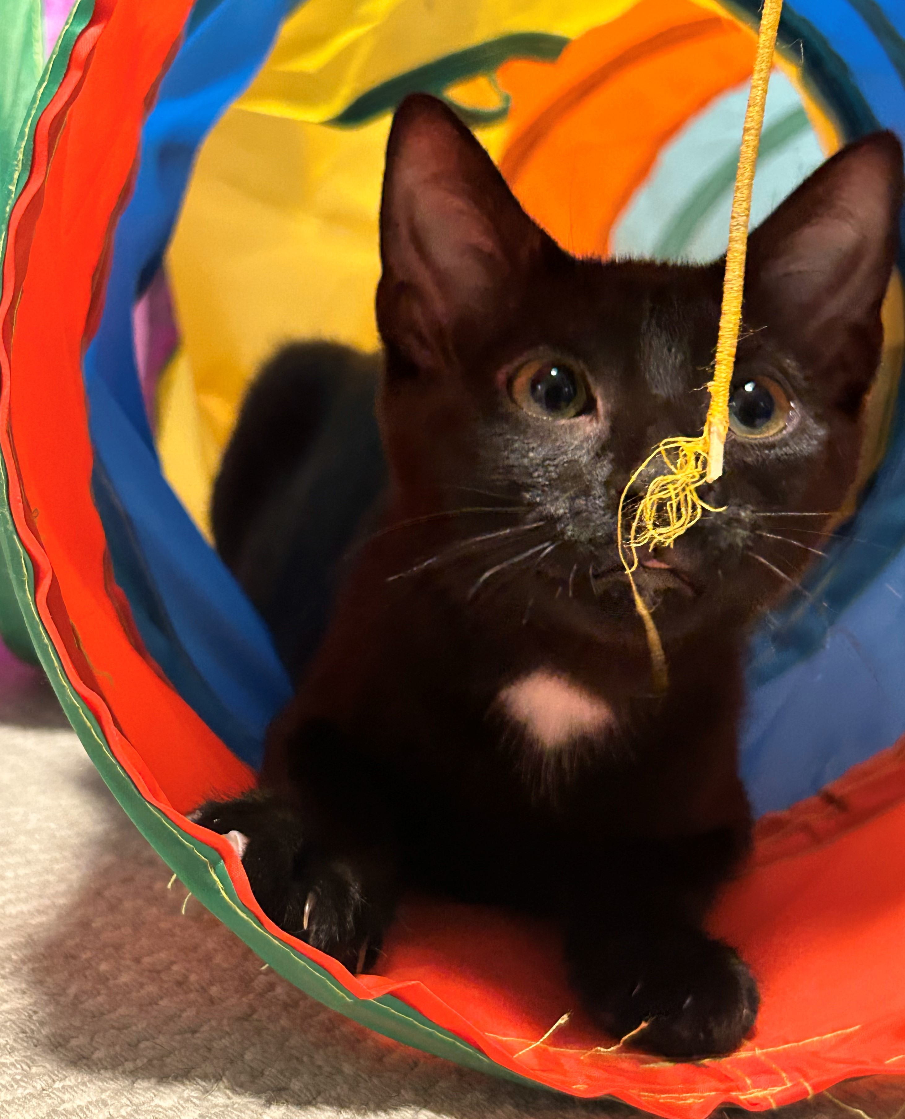 Muffy is such a sweet little guy (8 weeks old as of 10-8-20) who is lots of fun! He is very curious and loves to explore. He is always looking for toys to play with. He resides in a wonderful foster home with his brother Fluffy, each of whom can be adopted separately.