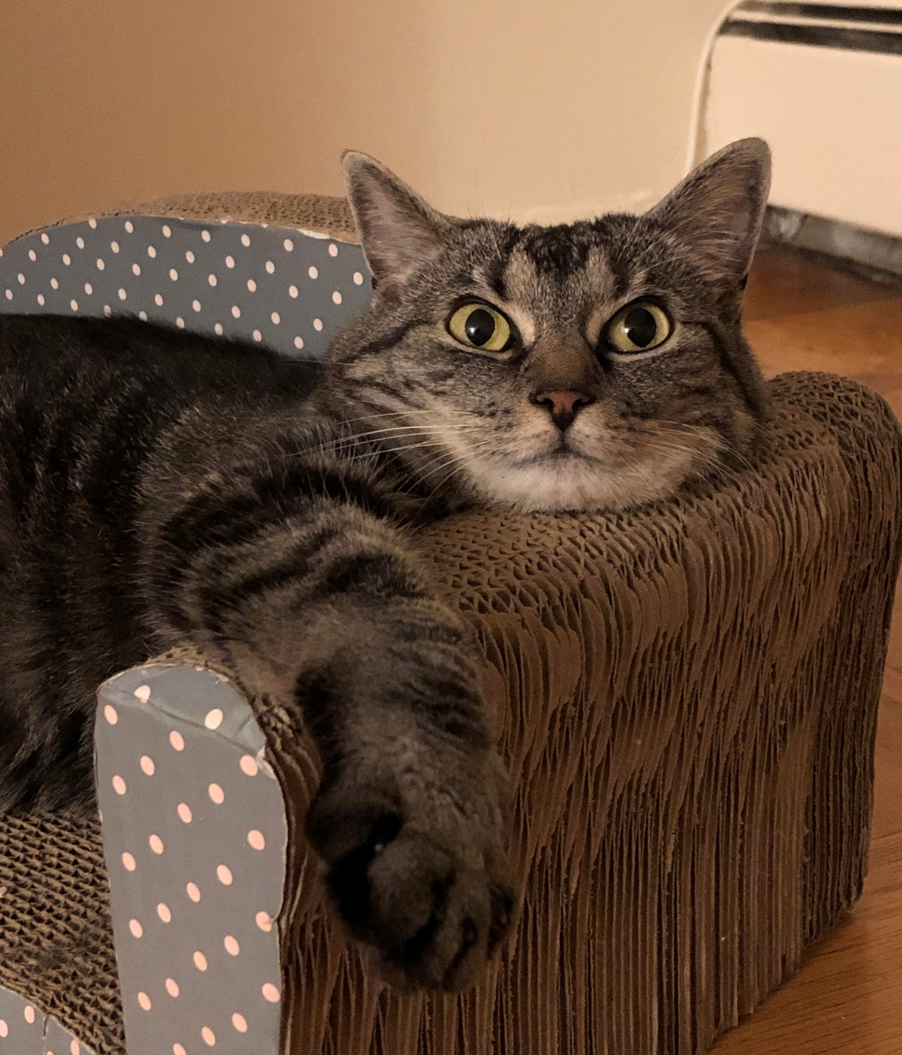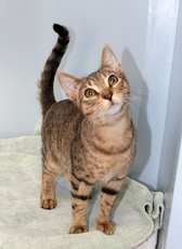 Madison is a stunning young swirl tabby, approx. 1.5 to 2 years old (as of 3/20/20). Rescued from a colony of feral cats in the Bronx, she was clearly no part of the group and her rescuer took her home to find her a permanent residence as a cherished pet. Madison can be loving and responds well to play with interactive toys when a human is attentive. This is a kitty who knows her own mind. Like many felines, she likes to choose her human. A bit nippy when she doesn't want to be bothered, we recommend a home with a single, couple or family with teenagers for our Madison.