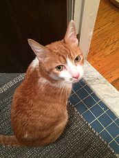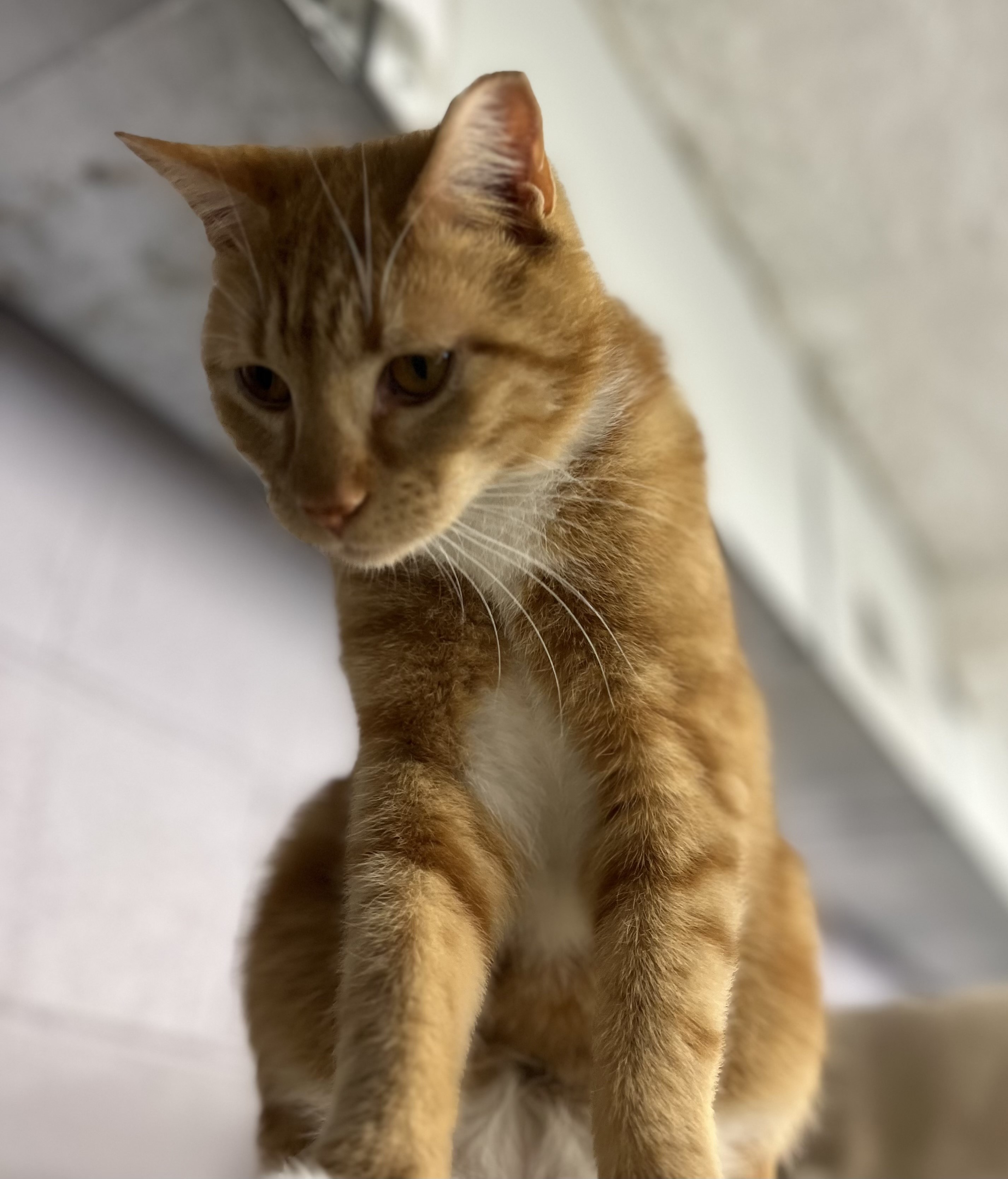 Mr. Kitty is a stunning 3-4 year old orange tabby and white male, abandoned on the streets of Manhattan. Rescued by a kindly man, he now resides temporarily in his apartment until a more permanent residence can be found for him. He was taken to a vet and is without microchip, but in good health. Attempts were made to locate his original owner but to no avail. Mr. Kitty is a friendly, spunky boy who will do best in a household with another cat with whom to share his friskiness. To meet Mr. Kitty, please contact Chris at cdrobny10025@gmail.com. (10/18)