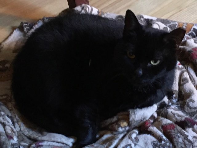 Mama is a lovely all black cat who got her name from once being the mama for several kitten litters. Long since spayed, Mama is a loving cat rescued by a woman who recently entered a long term care facility where cats are not permitted. Mama is approx. 8-10 years old, an indoors only kitty who is spayed but vaccinations need to be updated. To meet Mama please contact Christine at cjdharper@gmail.com or at 914-500-9646.