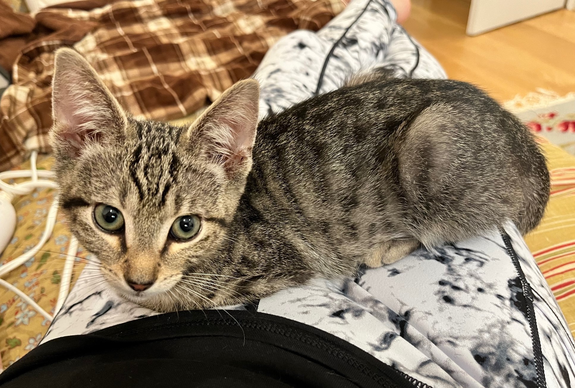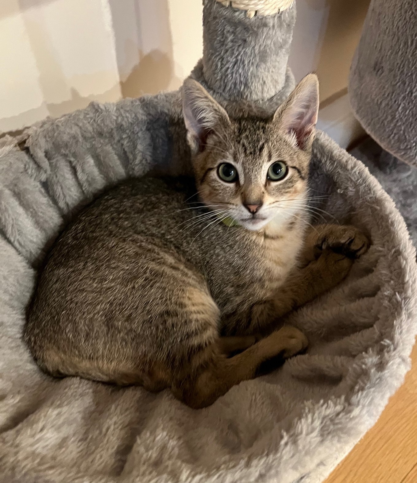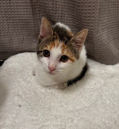 Date of Birth: 12/24/25 Maeve- small but mighty, this little purr machine will be sure to steal your heart! Curious, friendly, and energetic, she loves to play and wrestle with her sister Maera and will be the first to greet you at the door when you get home. But when it’s time to wind down this sweet girl loves to get in some snuggle time on your lap! Pick Maeve and you’ll be smitten with this kitten! Maeve can be adopted individually or with her sibling Maera.