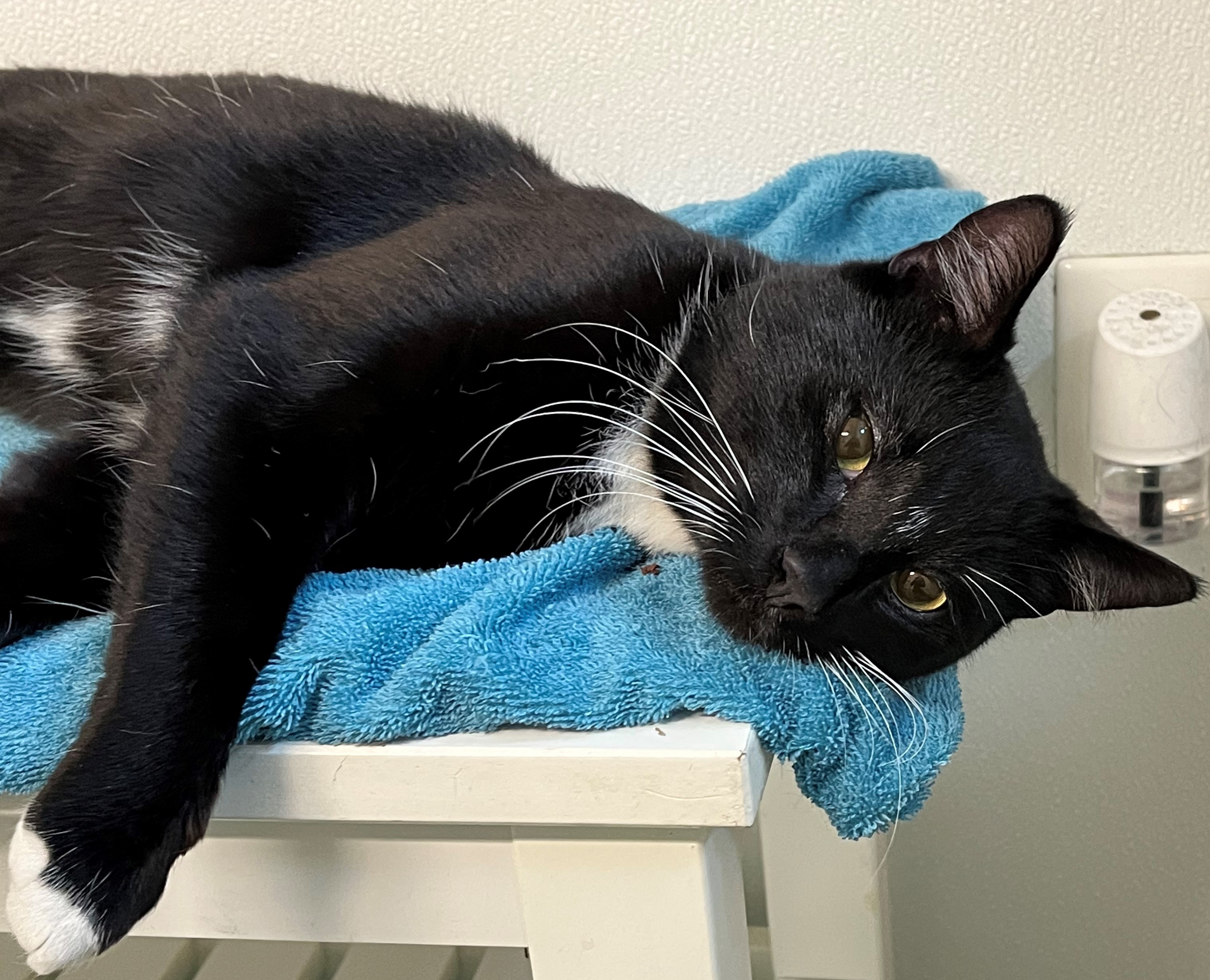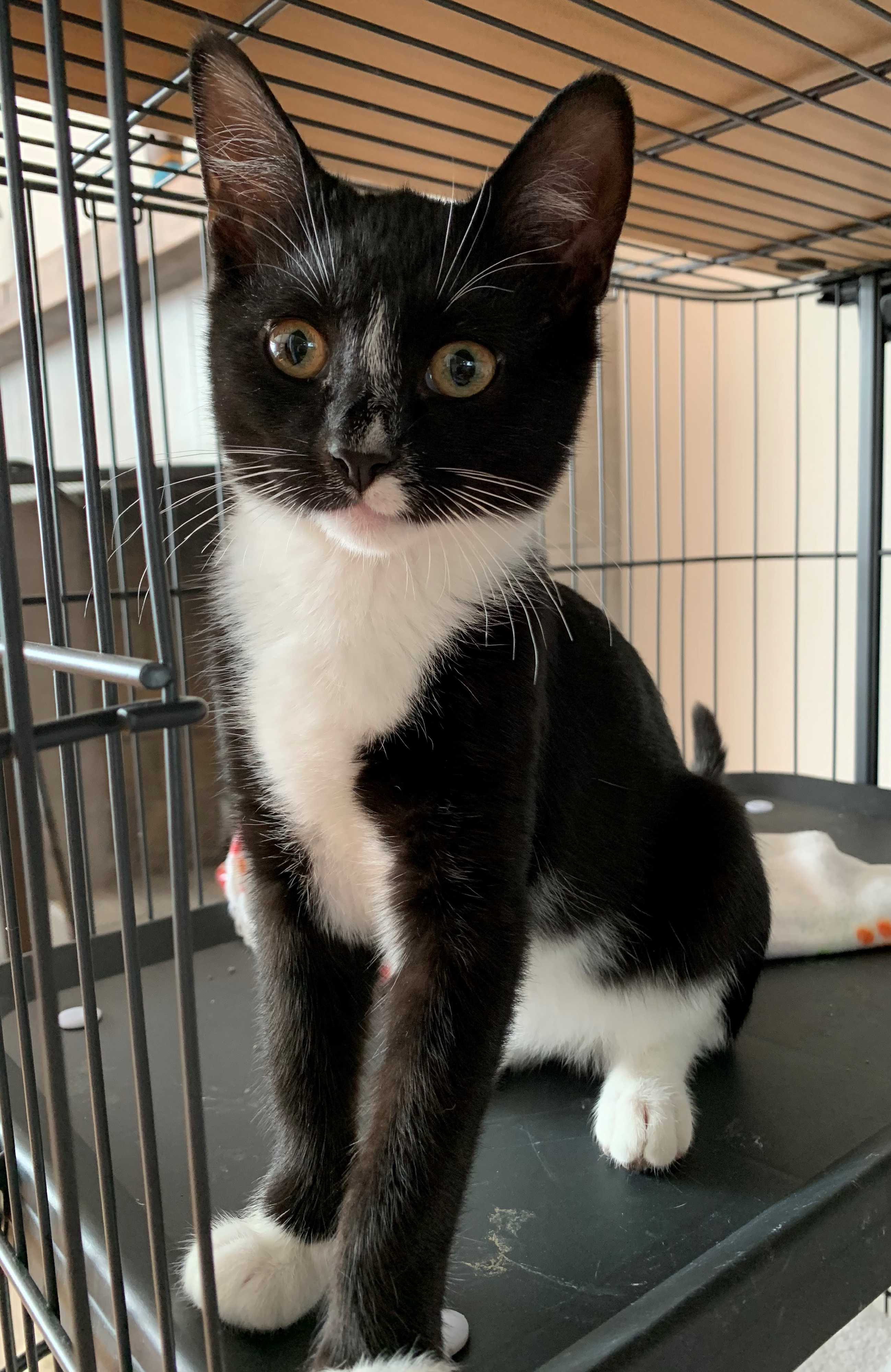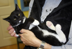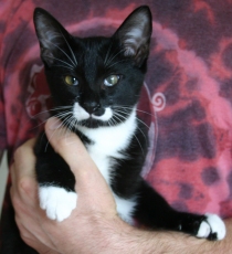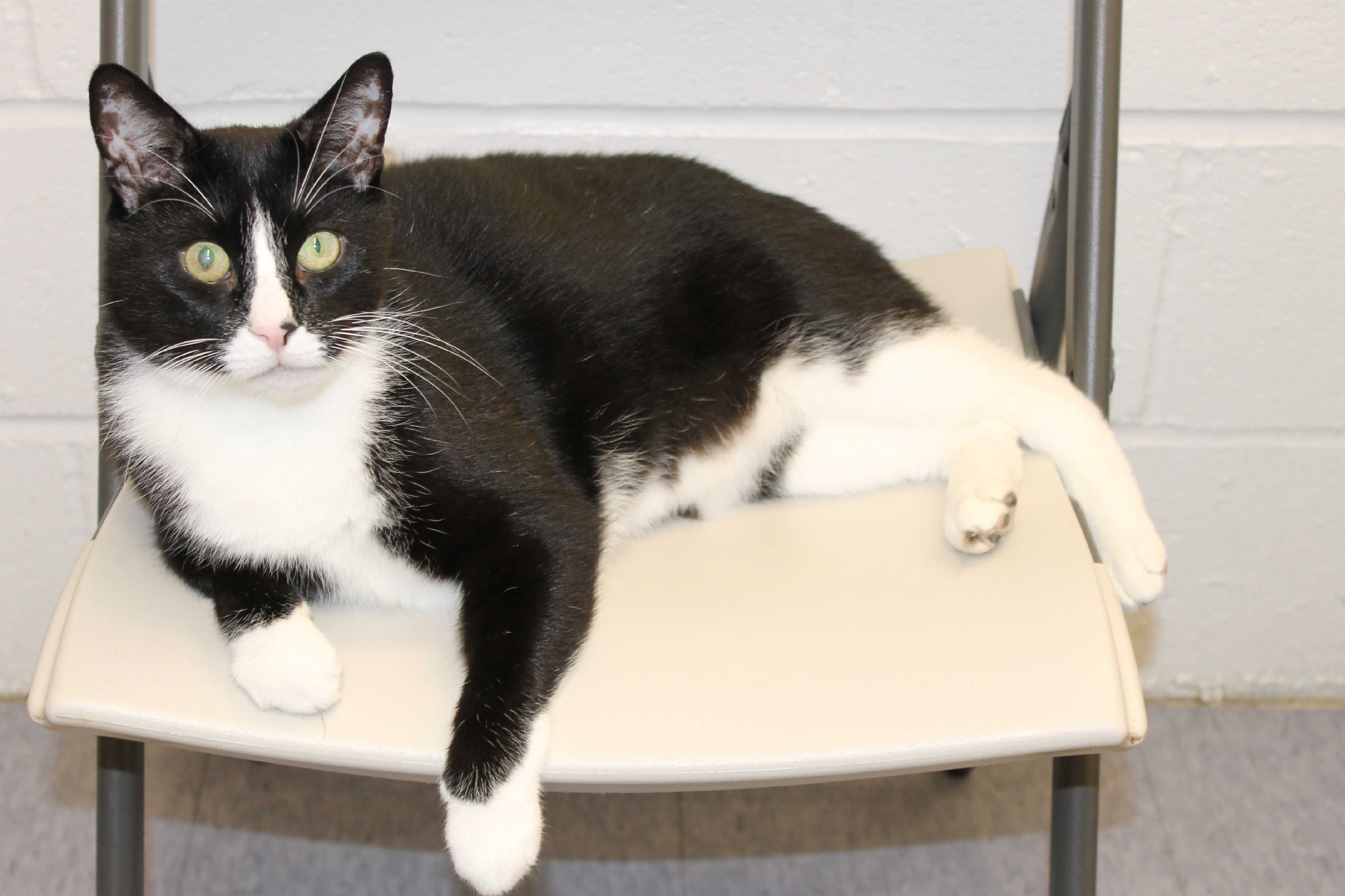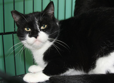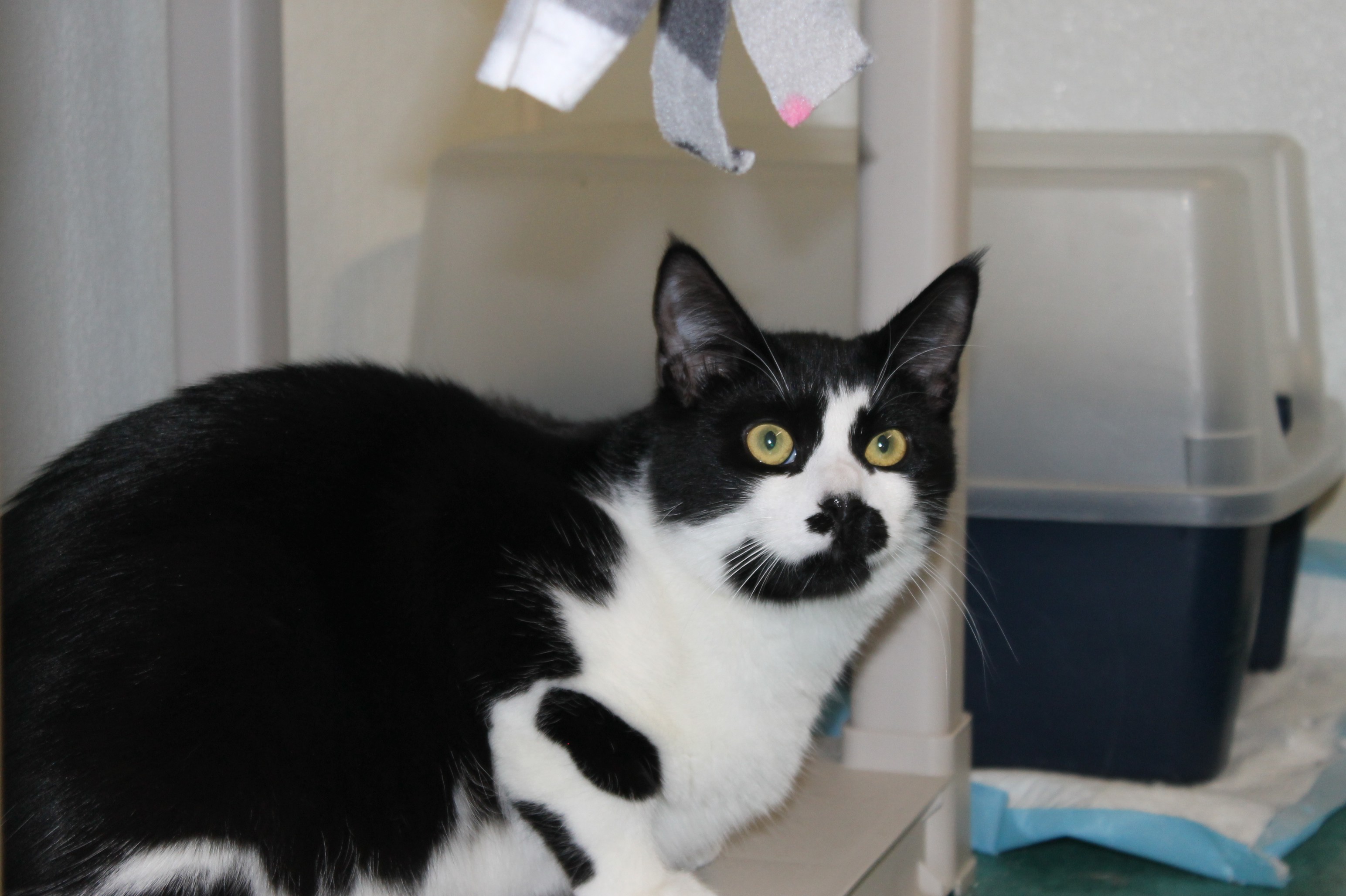Myles is a beautiful tuxedo, about 3 years old. He is a wee shy but very sweet and friendly. Myles is a real gentleman and should be a great family cat.