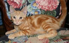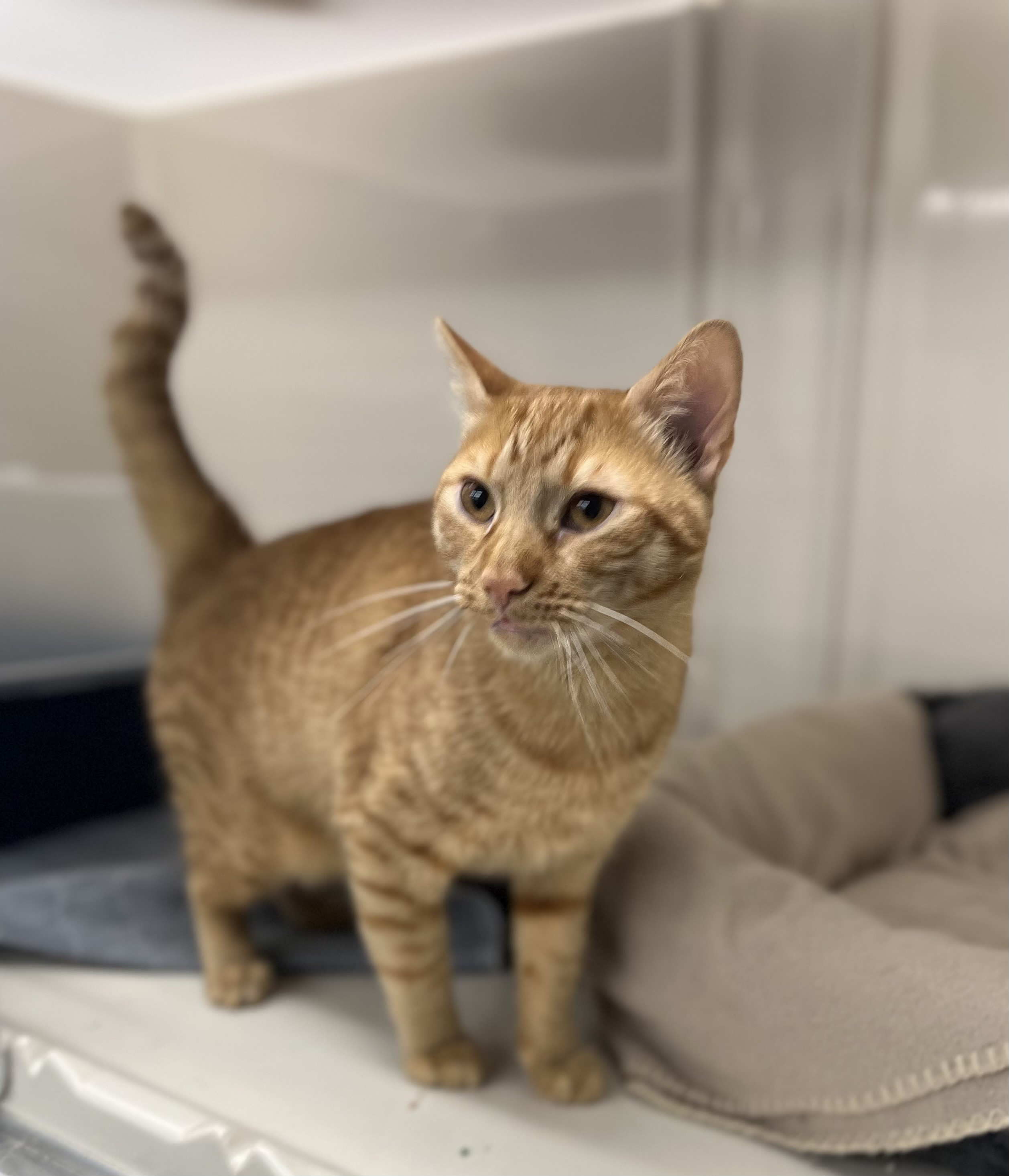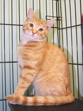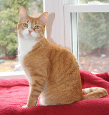 This handsome 11 month old buff/orange tabby male is a sweetheart. Thrown out by his first owners on one of the coldest nights of the year, spunky little Morgan found his way into a wonderful foster home filled with other cats, dogs and kids and he gets along with all. Our Morgan is a sweet, loving mushball! One look into his eyes and you will be smitten.