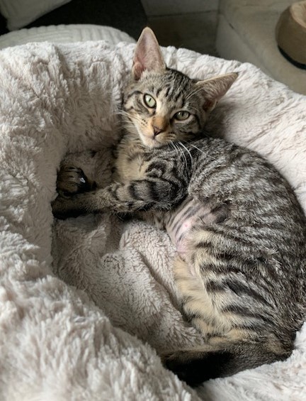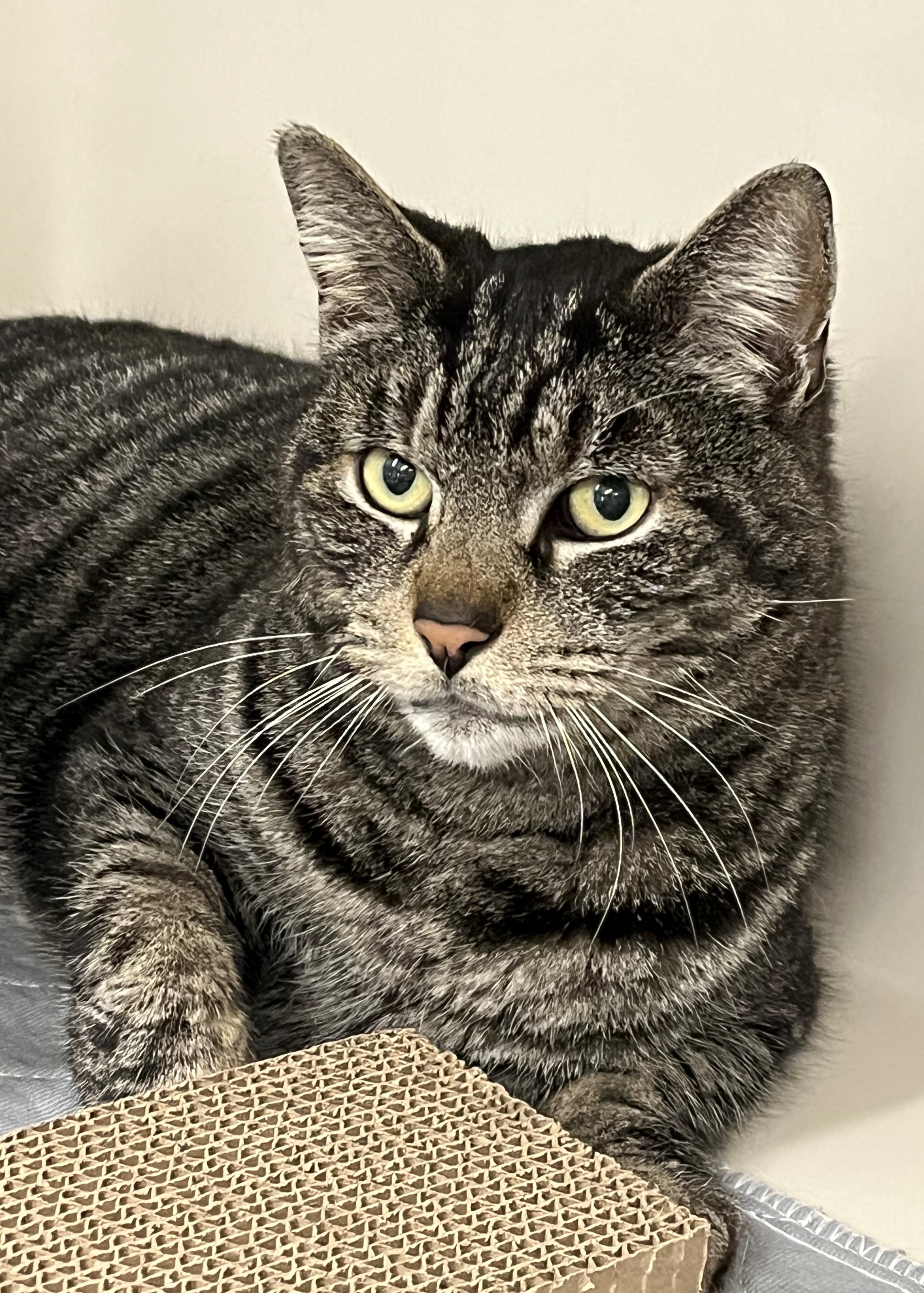 Born March 2018 Magnus is a traditional tabby boy. He is gentle, affectionate and an expert at making biscuits. He's not much of a talker but he does let out a plaintive meow if he's lonely. Magnus will approach you as soon as you hold out a hand and offer a pet. Magnus had to fend for himself on the street for quite a while and he is more than ready to be your furrever friend.