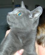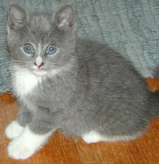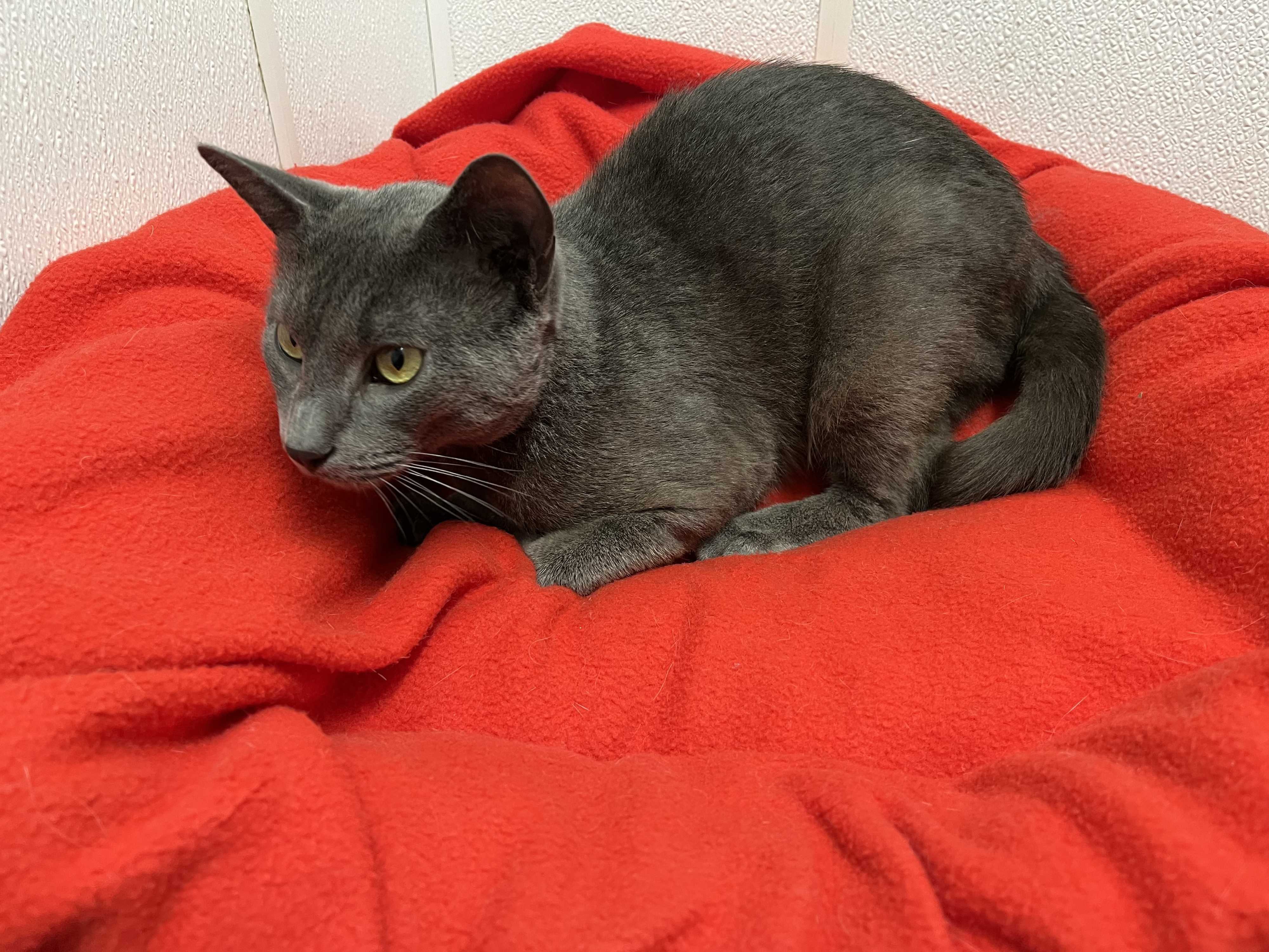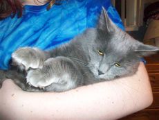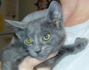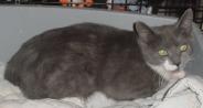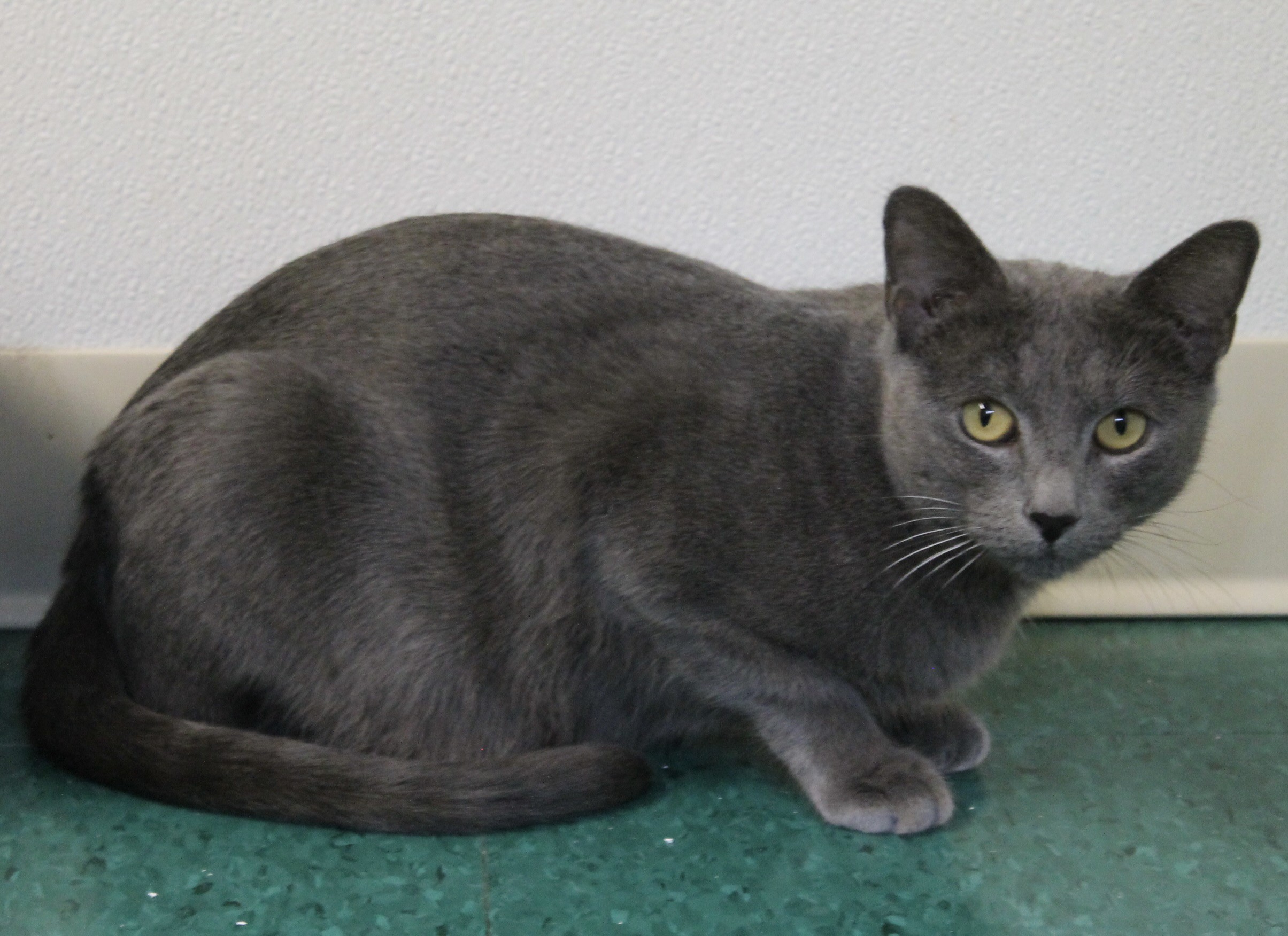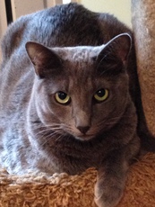 is a handsome Russian Blue, about 2-3 years old. Good with other cats. Very gentle with a sweet disposition