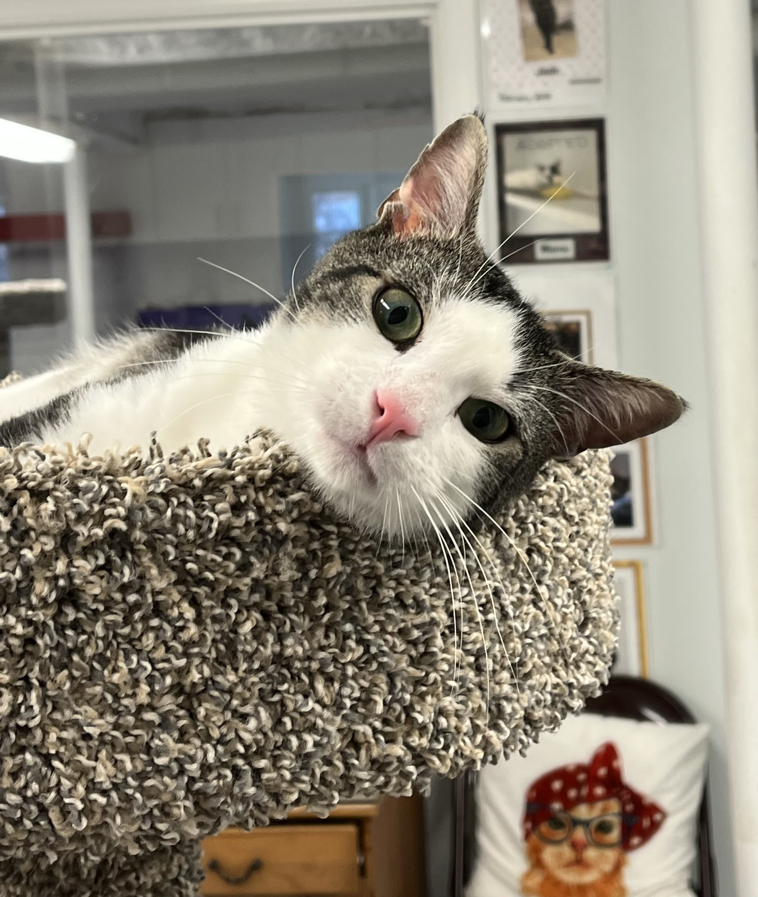 Declawed, furniture friendly Morgan is a handsome 6 year old gray and white tuxedo. Once he gets to know you he will be both charming and entertaining. He is the perfect combination of curious and calm, likes exploring and likes down time. He is perfect for a working single or couple, or retiree looking for a companion. Since Morgan is declawed he needs to be kept indoors and in a one pet only household. He wants to be King of his Castle, but he will share a pillow with you at night.To meet Morgan, please contact Carole at caroleaudrey99@gmail.com. (10/29/17)