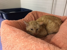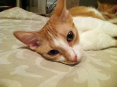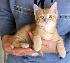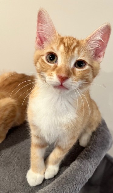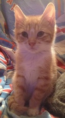 Morris is a 10 week old (as of 6-4-19) orange tabby kitten who is a cute, rambunctious friendly boy who loves to cuddle and sleep with you. He is a real sweetheart. His siblings, Daisy and Tigger, are also featured on this website.