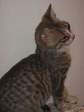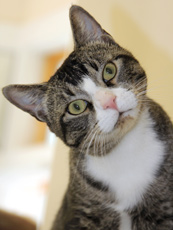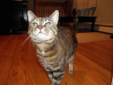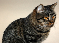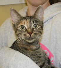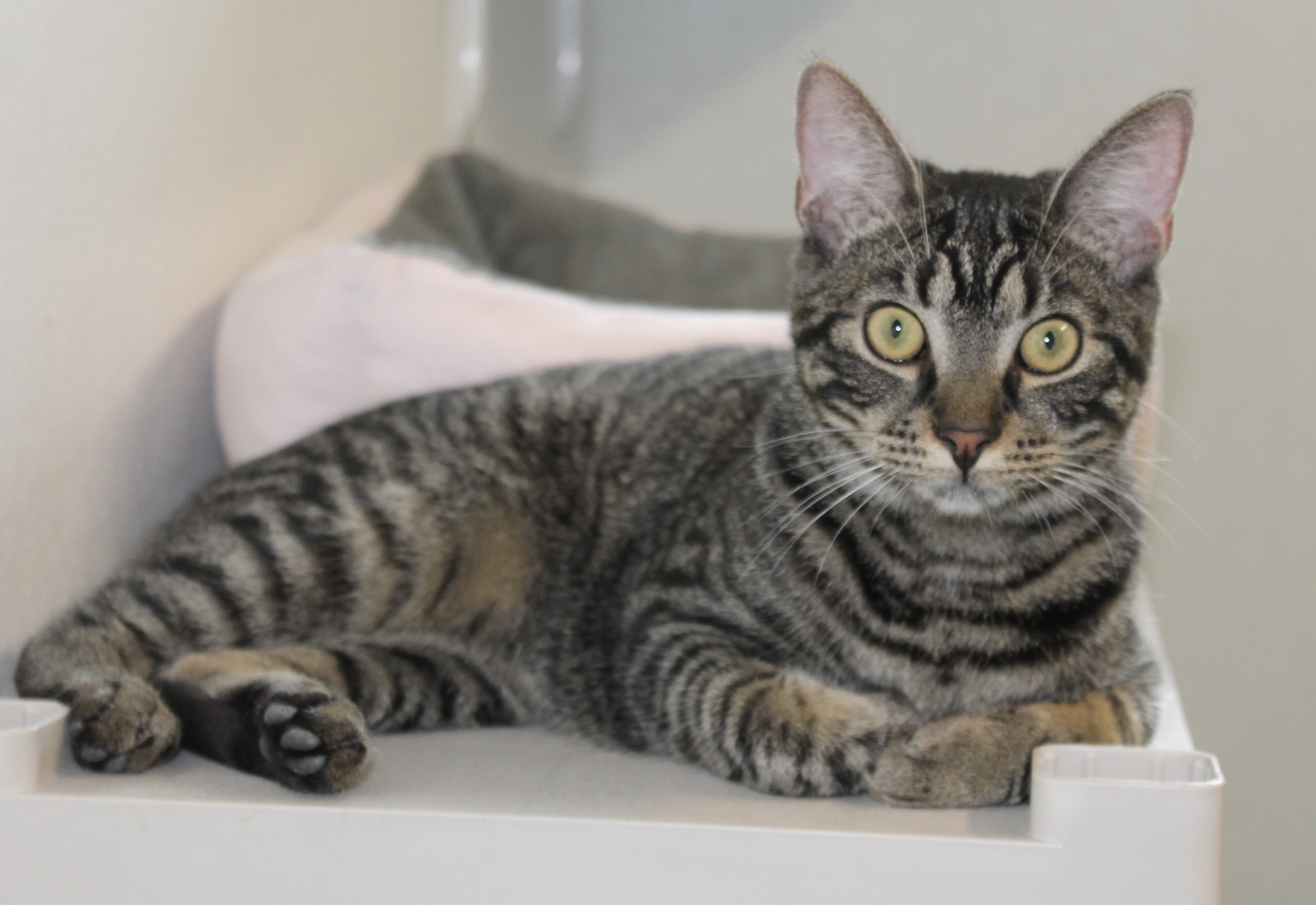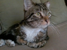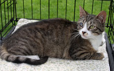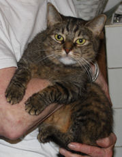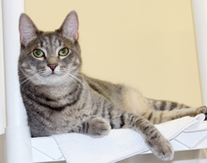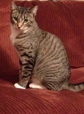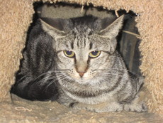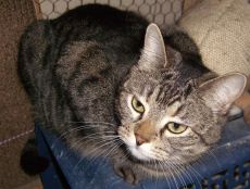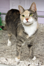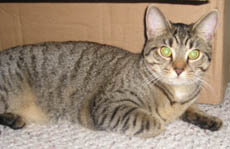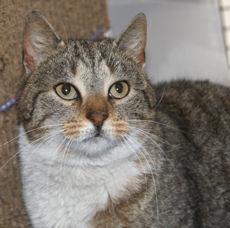This lovely young tabby is the mother of Midge, who is also featured on our website. Maggie has an easygoing personality, loves to be petted, and now that her mothering days are over, would be happiest in a household which she can consider home. Maggie gets along with other cats and should make a good family kitty.