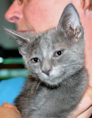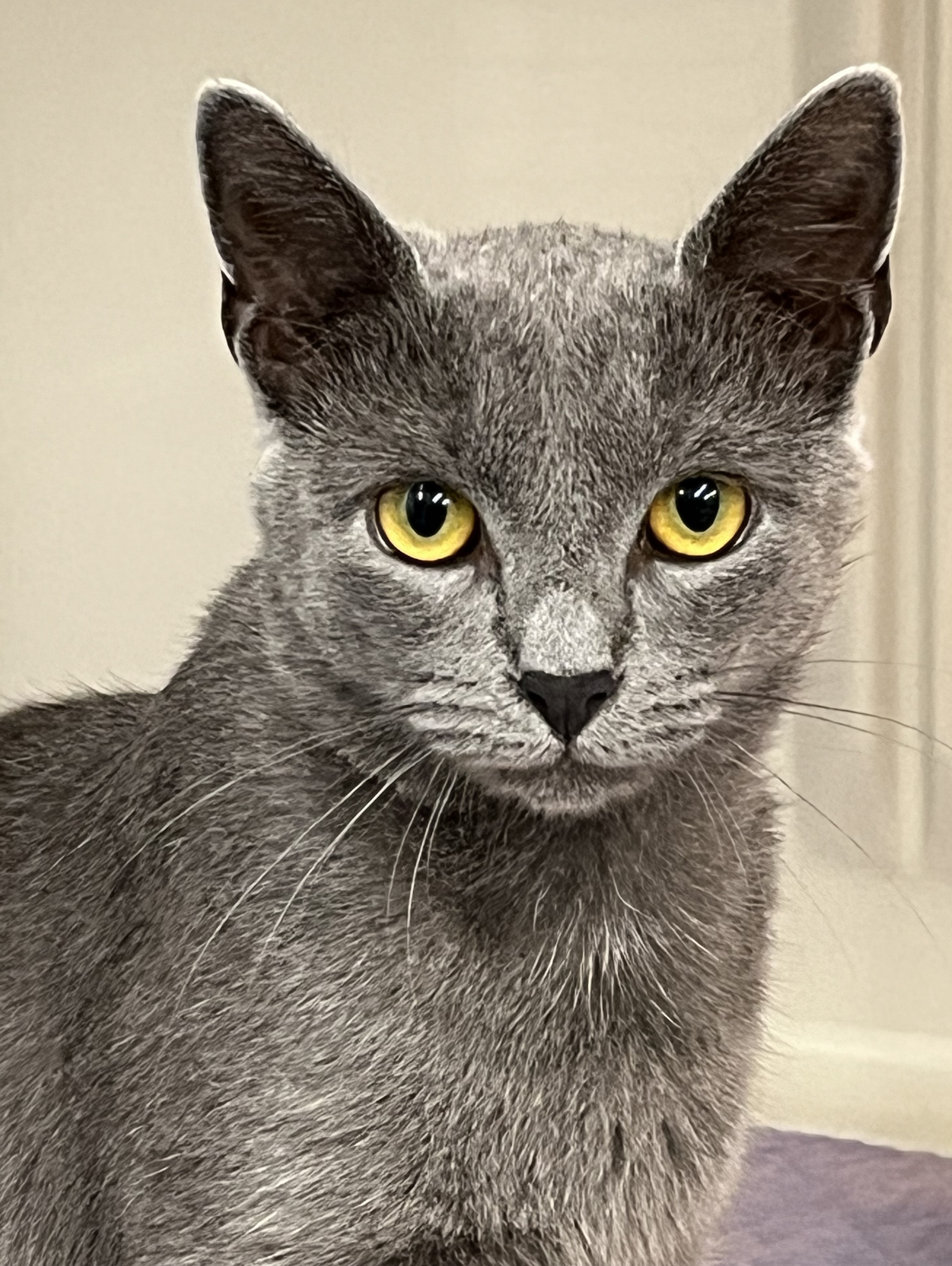 This Russian Blue is a true find. Lithe and intelligent, Morris is a bit wary at first with strangers, but will quickly adapt himself to his new surroundings and become a wonderful and loyal feline companion. Approx. 1 1/2 years old, Morris is in good health and up to date with all vaccinations.