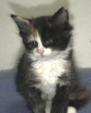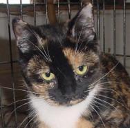 Maggie is beautiful calico, about 2 years old and very sweet. She is a bit shy so probably best in a home without little kids.