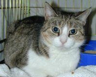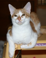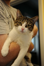 Muffie is a handsome 7 month old male. He is friendly and full of energy. He likes to play fetch with a crumpled up piece of paper. Muffie is afraid of dogs, but loves spending time with other cats. You will love this wonderful boy. cw