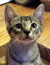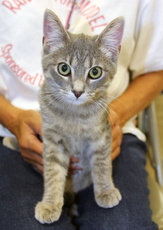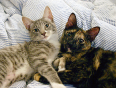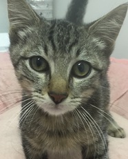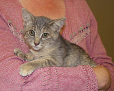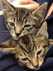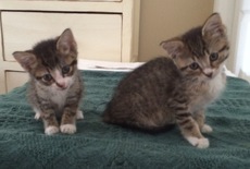 Maisie and Sophie are real darlings! These eight week old tabby girls would love to find a loving home together. They love to frolic and play. They are currently in a foster home with a dog.
