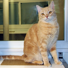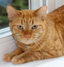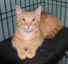 Malcolm is a handsome 5 1/2 year old orange tabby who recently came to Pet Rescue with his brother Miguel (also posted) and a wonderful tuxedo female named Pazoozie . This boy loves human attention and will roll over for belly rubs in no time at all. Malcolm loves to play and have fun. He will delight you with his antics and make a delightful family pet.